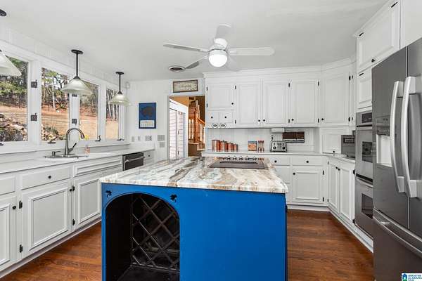 Once an 1880s carriage house owned by Anniston founder Sam Noble, this beautifully renovated home blends historic charm with modern comfort. Nestled in a quiet, private setting just minutes from downtown, it offers a true retreat with incredible outdoor living and hobby farm potential. The spacious master suite includes serene views, a sitting room, and two walk-in closets. A gourmet kitchen opens to a peaceful patio ideal for entertaining. Outdoor features include a waterfall, koi pond, and lush gardens with fruit trees, herbs, and raised beds. The upper patio has hosted live music, and the fenced backyard previously housed goats, chickens, and bees. A successful Airbnb, this one-of-a-kind property combines history, nature, and income potential.