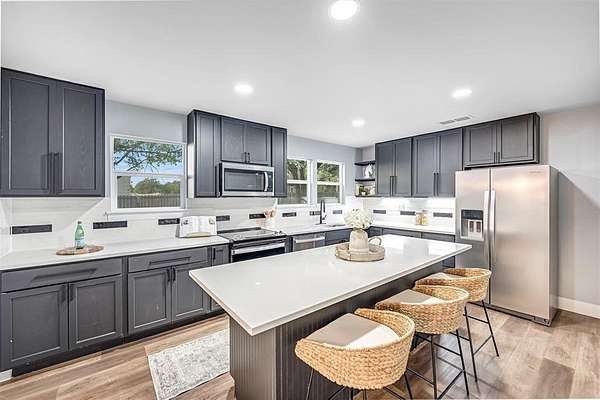 Taken down to the studs and thoughtfully rebuilt, this modern farmhouse blends timeless design with the comfort and freedom of country living. Featuring 3 bedrooms and 2 bathrooms, the home was carefully designed to feel warm, functional and inviting, with a layout that supports both everyday living and entertaining. The kitchen serves as the heart of the home, offering a generous island, custom cabinetry and quality finishes that balance style and practicality. Open living spaces are filled with natural light and views of the open land and wide Texas skies. Evenings bring remarkable sunset views, creating a peaceful setting that feels removed from the pace of city life. Situated on nearly 2 acres, the property provides space and flexibility for a variety of uses, including gardening, a workshop, animals or simply enjoying the privacy and quiet of a rural setting. A spacious two car garage adds additional storage and functionality. Every major component of the home has been replaced, including roof, HVAC, electrical, plumbing, windows, appliances, sheetrock, cabinetry, doors and durable LVP flooring, offering the confidence and efficiency of a fully updated home. Designed for those seeking space, comfort and connection to the outdoors, this property offers a rare opportunity to enjoy refined interiors in an open and peaceful Texas setting.