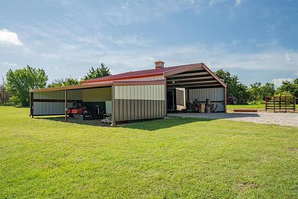 - Barbecue, Covered Patio/Porch, Fence, Fire Pit, RV Hookup, RV/Boat Parking, Rain Gutters, Stable/Barn, Storm Cellar