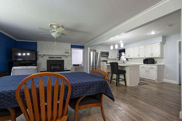 County Charm, City Conveniences! This 4 BR, 3 BA, approx. 2,462 sq. ft. is situated on 3 level acres and is conveniently located in South Ozark! The thoughtfully designed living space that's perfect for both relaxation and entertaining. The heart of the home features an open floor plan connecting the Living Room with its cozy electric fireplace to a Kitchen boasting stainless steel appliances, quartz countertops, a center island, and convenient pantry storage. Need more space to spread out? The Sun Room or 2nd Living area with wood-burning stove provides the perfect spot for movie nights or quiet reading. The main level Primary Suite serves as your personal retreat, complete with a full Bathroom featuring an accessible walk-in shower, closet space, and direct access to the covered back patio. Separate heating, cooling, and water heater systems ensure year-round comfort and efficiency. Head up half a level to discover a second Primary Suite with walk-in shower, two additional Bedrooms, another full Bathroom and plenty of linen storage. The property includes a detached two-car garage with workshop space and storage shed for all your projects and hobbies. One acre of fencing provides security while maintaining that peaceful country atmosphere. The sellers are willing to include farming essentials like a tractor, landscaping tools, washer, and dryer to help jumpstart your hobby farm dreams. Recent updates include roof, heating and cooling systems, and water heaters. Located conveniently near shopping, and spots to enjoy the beauty of the Ozarks, you'll enjoy easy access to amenities while savoring the tranquility of country living. This is one you won't want to miss!