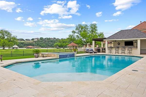 Step outside and experience a true entertainer’s paradise. The 25’x50’ resort-style pool and spa is complemented by a fully equipped outdoor kitchen, a cozy fireplace, and generous patio space for year-round enjoyment. Take the short walk down to your 2,000 sq ft premium boat dock, which has room for 2 boats, 2 jet skis, as well as sitting areas, sunbathing deck, and outdoor shower. This dock is ideal for boating, fishing, or simply soaking in the serene beauty of the lake. This property delivers the perfect balance of luxury, functionality, and outdoor living—offering a rare opportunity to own a one-of-a-kind lakefront estate that truly has it all. Schedule your private showing today and experience lakeside luxury at its finest!