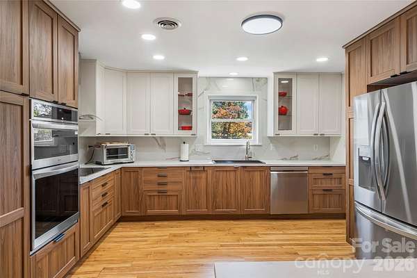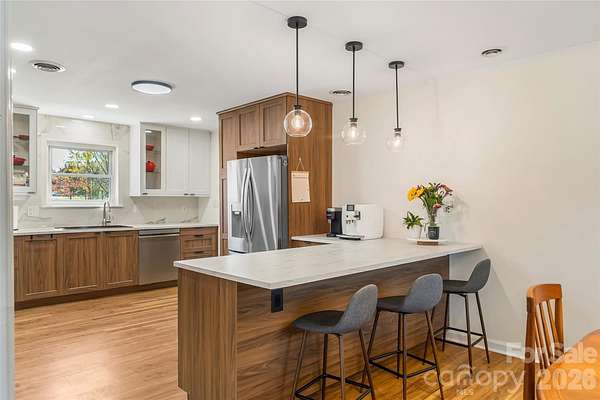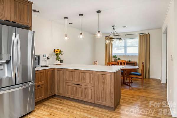 Welcome to this beautifully maintained and updated home offering the perfect blend of modern comfort and outdoor enjoyment. The property features a sparkling in-ground pool with a brand new liner and steps, perfect for relaxing or entertaining. The refreshed asphalt tennis court adds even more options for recreation right at home. Inside, you'll find a bright, freshly painted interior with new Cali flooring in the living room, dining room, and kitchen. The kitchen includes newer appliances and an induction cooktop, ideal for any home chef. Seller has opened dining and kitchen area for a perfect flow. Both bathrooms have been tastefully remodeled and new electric wiring in basement are all part of the updates offered in this home. Basement offers a family room, updated bathroom, bedroom, and updated kitchenette. Outside, the home and detached garage have been newly painted, the home, attached and detached garage have been topped with a new roof, and the driveway has refreshed asphalt. Enjoy easy maintenance and outdoor gatherings on the Trex deck overlooking your private backyard oasis. The 32x24 detached garage features a covered patio area and additional storage above. This property provides plenty of space for all your recreational toys. Located just minutes from Lake James, this property offers the perfect setup for those who love the outdoors -whether you're boating, swimming, or simply relaxing poolside at home.