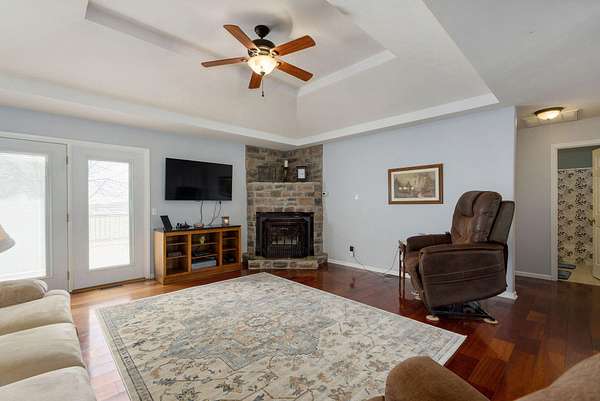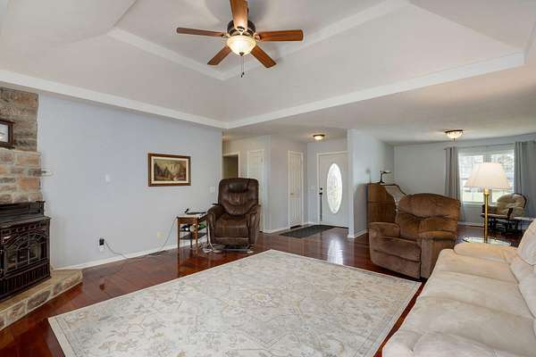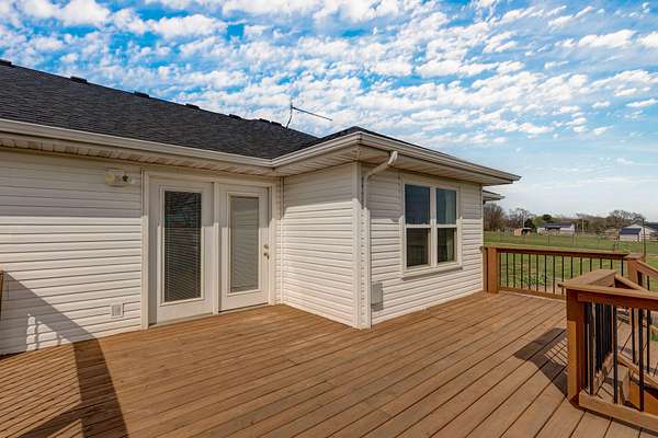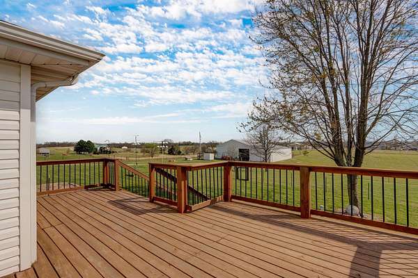 Great Home with a big shop on 5 ACRES in Rogersville! 3 Bd, 2 Ba, Beautiful Brazilian Cherry Hardwoods, formal dining or office, large deck with views of Ozark & Sparta. Windows replaced in 2014, new roof in 2025, Air handler and Heat Pump 2020, water softener added in 2025. Master has jetted tub, walk-in closet and walk-in shower. 60 x 60 Shop w/ 14 ceilings, auto garage door openers, 110V & 220V electrical service (lots of elec outlets!, work bench. 6 thick concrete floors in 40 x 60 area of shop with 2- 12 pull thru overhead doors. Would be great for RV or Semi truck or a business! Also has an office with radiant floor heating and window unit ac, tankless water heater & bath. 20x60 area of the shop is gravel with 3 horse stalls.