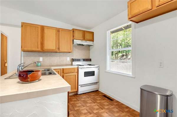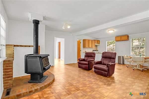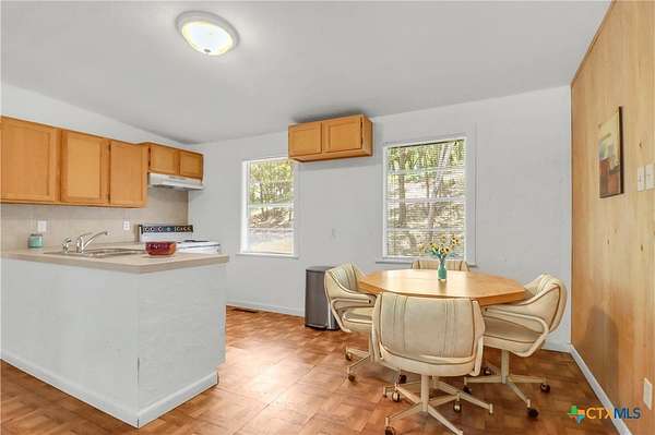 Secluded oasis along the Geronimo Creek. This 2 bedroom 2 bathroom home resides on 1.8 acres with mature trees and approximately 530 feet along the Geronimo Creek. This live water is great for recreation and features a private spring fed swimming hole. This cute 2/2 features a metal roof, wood burning stove, central cooling, and a 436 sq ft vinyl deck with incredible views of the expansive yard and creek frontage. The lower level features a full bathroom, party prep area, and a 132 sq ft storage/workshop. Cinder block construction storage building is approx. 432 sq ft. This is the place to bring friends/family and enjoy secluded nature while only minutes from downtown Seguin.