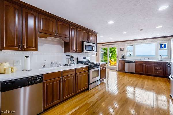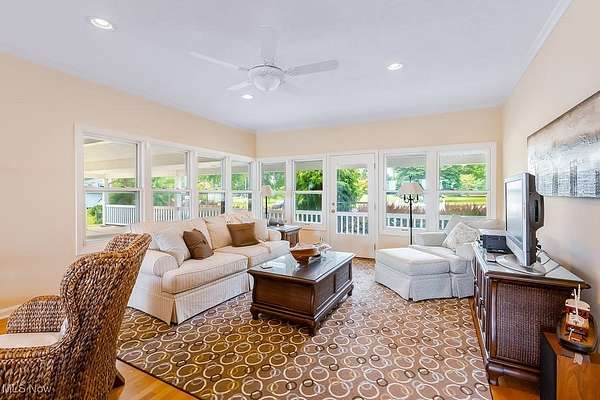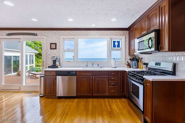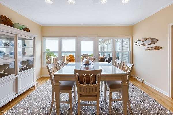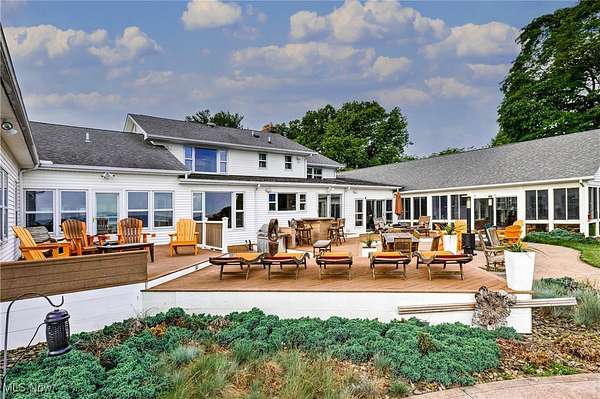 Welcome to your dream lakefront retreat on Lake Erie in Conneaut, OH! This stunning contemporary home, nestled on over 2.5 acres, offers unparalleled luxury and tranquility with private access to the lake, featuring a well-thought break wall and gravel path for easy water enjoyment. Imagine waking up to breathtaking lake views from almost every room in this spacious home. With 7 bedrooms and additional rooms that can serve as extra bedrooms or flexible spaces, there's plenty of room for family and guests. This home offers the unique opportunity for separation, allowing multiple groups to stay at once while maintaining privacy. The multi-tiered back patio, complete with a built-in fire pit, looks out to the serene waters of Lake Erie, making it the perfect spot for entertaining guests or enjoying a quiet morning coffee with a good book. Inside, the main level boasts beautiful hardwood floors, a chef's kitchen with double appliances and a bar area, and two cozy fireplaces that add warmth and charm. The full finished basement extends your living space with a kitchenette and ample rooms for various entertainment needs, whether it's a game room, home theater, or additional guest quarters. The spacious heated 4-car garage offers both convenience and comfort, ensuring your vehicles are well-protected year-round. This home is not just a place to live; it's a lifestyle. Don't miss your chance to experience unparalleled lakefront living in this magnificent property!