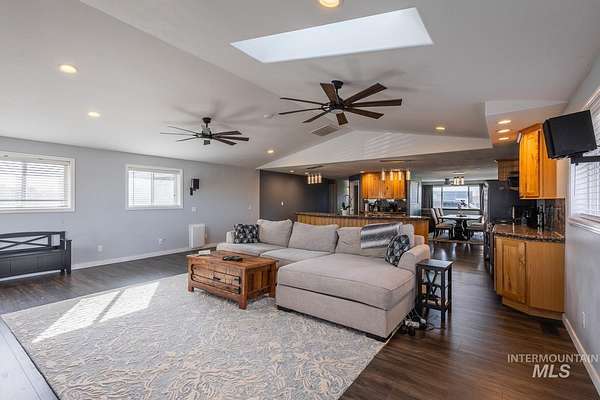 Spacious and versatile, this 4-bed, 3-bath home offers dual primary suites, a formal dining room, two living spaces, and a flexible bedroom perfect for an office. The kitchen features granite counters, knotty wood cabinets, stainless steel appliances, and an electric range. The main suite includes a bay window, large tiled walk-in shower, and a jetted soaker tub. Laminate flooring runs throughout, and a dedicated laundry room adds convenience. A separate 1-bed/1-bath income-producing ADU includes a full kitchen, laundry, attached garage with shop, and upstairs loft. A second detached shop features roll-up doors, workspace, and RV parking. With Indian Creek running past and wide-open space all around, this property offers comfort, functionality, and potential--all in a peaceful setting. BTVIA
