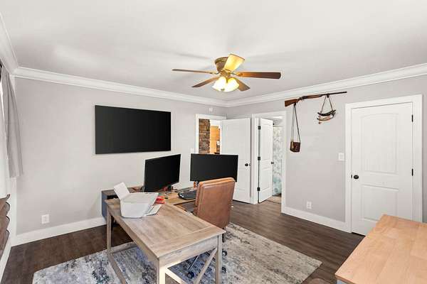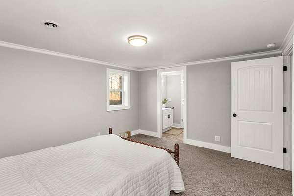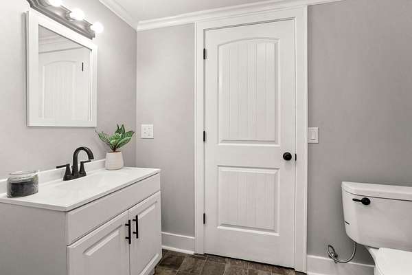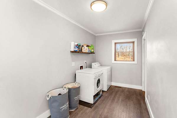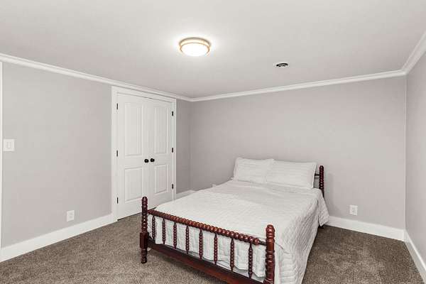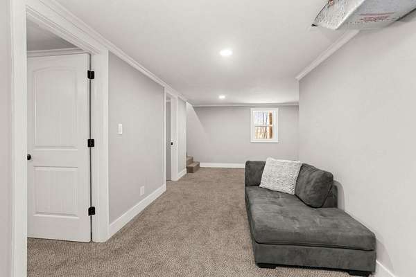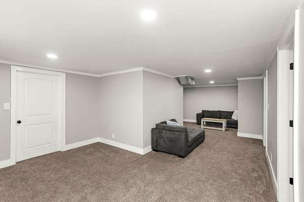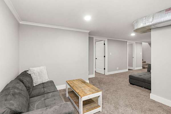 The main level includes two bedrooms, each with its own private bath, while the partially finished basement adds a third bedroom and full bath, ideal for guests or multi-generational living space. A spacious laundry room with extra storage adds everyday practicality.