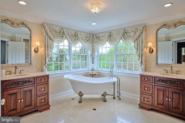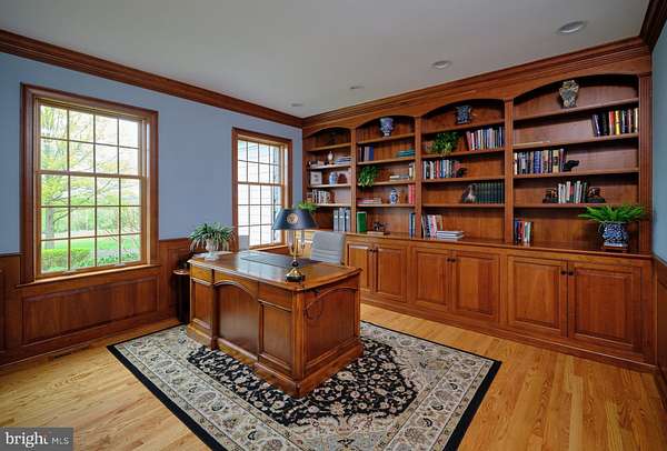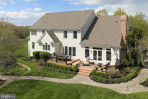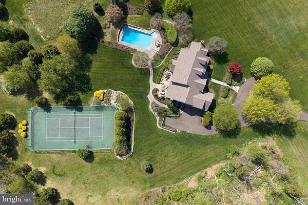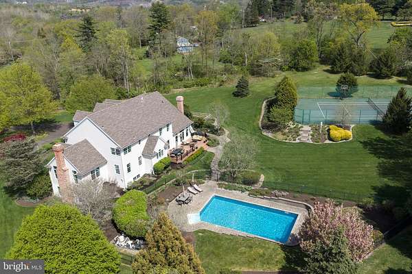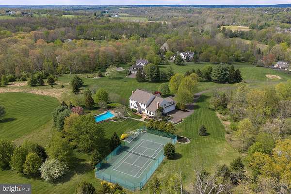 Council Rock North exquisite estate property set amidst rolling green hills and tranquil woodlands, and is gracefully positioned on 5 private acres, offering a rare blend of elegance, privacy, and resort-style "staycationliving. A grand two-story foyer welcomes you with a sweeping staircase, wainscotting, rich hardwood flooring, setting the tone for the home's refined yet inviting interiors. The sun-filled main level offers a gracious and thoughtfully designed floor plan, beginning with a handsome private study, a formal living room, and detailed wainscoting, and an elegant dining room enhanced by custom millwork and wainscoting Just beyond, a spectacular two-story conservatory with its own fireplace and wainscoting creates a light-filled sanctuary. The gourmet kitchen is beautifully appointed with quartz countertops, premium appliances, an expansive center island with seating, and a generous walk-in pantry. The adjoining breakfast room, bathed in natural light and featuring a convenient back staircase, overlooks the picturesque grounds.The impressive two-story family room serves as the heart of the home, showcasing a dramatic floor-to-ceiling stone fireplace flanked by custom built-ins perfectly balancing warmth and sophistication. A well-appointed laundry room, mudroom, and three-car side-entry garage complete the main level.Upstairs, five spacious bedrooms include a luxurious primary suite with a private sitting room and spa-inspired bath. The fully finished lower level is designed for both entertaining and everyday enjoyment, offering a wet bar, wine room, full bath, exercise room, billiards area, recreation space, and media room.Outdoor living is equally exceptional, with a two-tiered deck spanning the rear of the home-ideal for entertaining or relaxing while taking in the serene surroundings. The grounds are a true retreat, featuring a tennis/pickleball court, impeccably manicured gardens, and a custom in-ground pool.This home has been lovingly maintained, is move-in ready and features many beautiful upgrades!