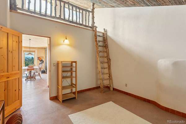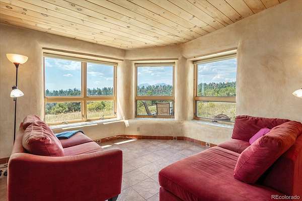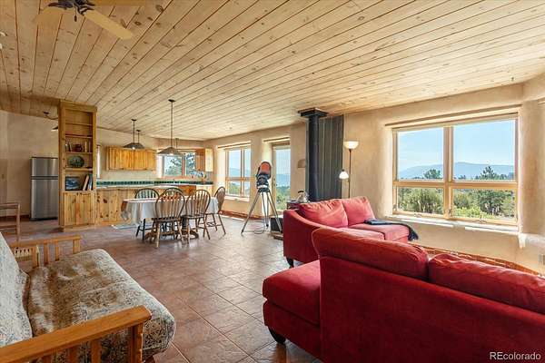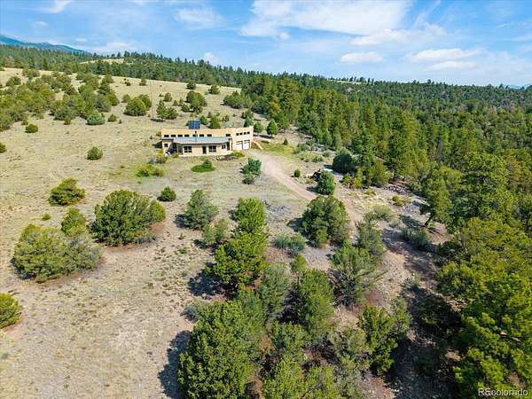 Looking for that Salida-area mountain property with privacy, big sky, and serious space to breathe? This 40-acre off-grid homestead 13 miles outside of Salida is not for everyone, but for the right soul, it is everything. Perched high with top-of-the-world views you have to see to believe, this southwest-inspired straw bale home blends durability with unique charm. Well-insulated and thoughtfully designed, it captures passive solar warmth through its southern exposure, filling the space with natural light year-round. Wind generated power is also utilized to keep the home fully functional. Inside, tiled floors and countertops, handcrafted cabinets with southwest flair, a window over the kitchen sink with views all the way to Salida, and a cozy wood-burning stove in the Great Room create a warm, grounded feel - especially during those crisp mountain evenings. The layout includes a primary bedroom with patio access, an en suite bathroom, and a walk-in tiled shower. A second bedroom (or ideal office) includes a loft space for whimsical versatility. Step outside to a private patio where the silence stretches for miles and the stars overhead are your neighbors. This home is not for the faint of heart - it is for the ones who thrive beyond the grid, who seek quiet over convenience, and who see 40 acres not as work, but as freedom. Well allows for an additional home, 1 acre lawn/garden, and domestic animals. Home is located along a private road in which you must be accompanied by a broker (sorry, no drive bys). Note: This is one of 3 adjacent properties being offered for sale, giving you an opportunity to purchase 120 acres with a total of 3 homes if desired. Watch the video at book.emeraldrealestatemedia.com/2457594 then reach out today for a showing!