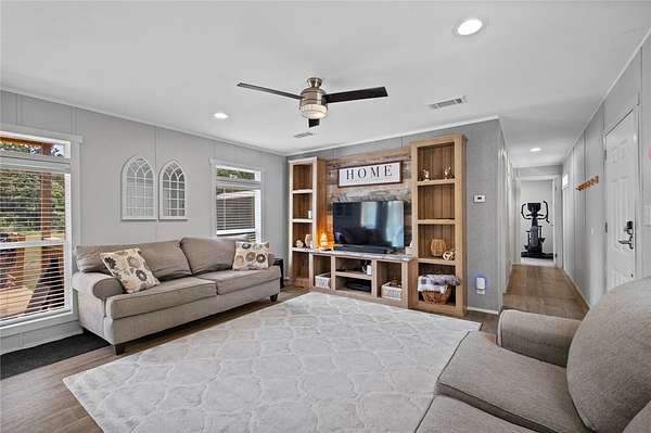 - Ceiling Fans, Eat In Kitchen, Solid Surface Counters, Split Bedrooms, Walk In Closets, Window Treatments
