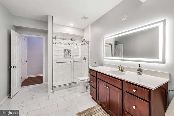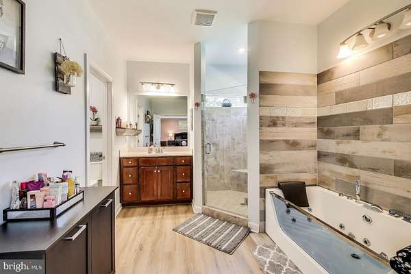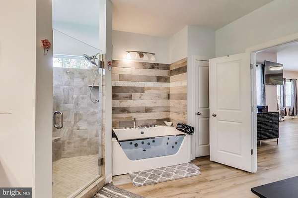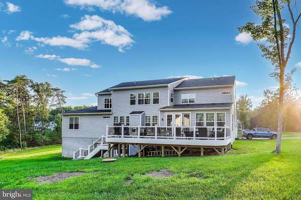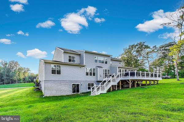Experience luxury living in this exceptional estate home, perfectly situated on over 2.5 acres in the sought-after Estates of Chancellorsville. From the moment you step into the grand two-story foyer with oak staircase, you'll be captivated by the open and elegant layout, featuring a gourmet kitchen with Monogram stainless steel appliances, upgraded cabinetry, granite countertops, walk-in pantry, and a stunning morning room filled with natural light. This home offers the perfect blend of function and flexibility with a first-floor private suite, complete with its own entrance, living/dining area, full bath, and spacious walk-in closet-ideal for guests, in-laws, or a home office setup. The upper level boasts a massive owner's suite with sitting room, dual walk-in closets, and a luxurious Ultra Spa Bath with a jacuzzi tub and massage features. Each secondary bedroom includes its own en suite bath and walk-in closet, plus the convenience of upper-level laundry. The fully finished walkout basement is an entertainer's dream-featuring luxury flooring, an incredible custom bar, a temperature-controlled walk-in wine and liquor cellar, a huge rec room with built-in premium Bose sound system, a spacious guest room, and a full oversized bathroom. Step outside to enjoy the expansive newly rebuilt deck, perfect for outdoor gatherings or simply relaxing in the privacy of your tree-lined backyard. With over-the-top upgrades, expansive living spaces, and a layout built for comfort and entertaining, this home is truly one of a kind.