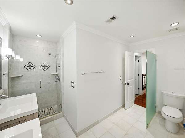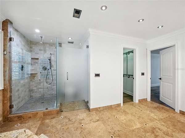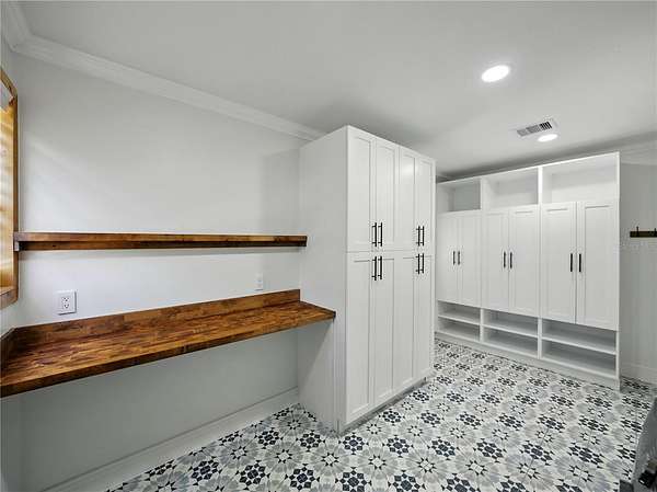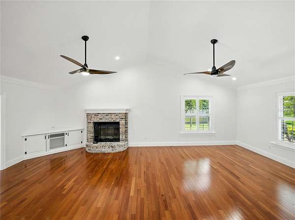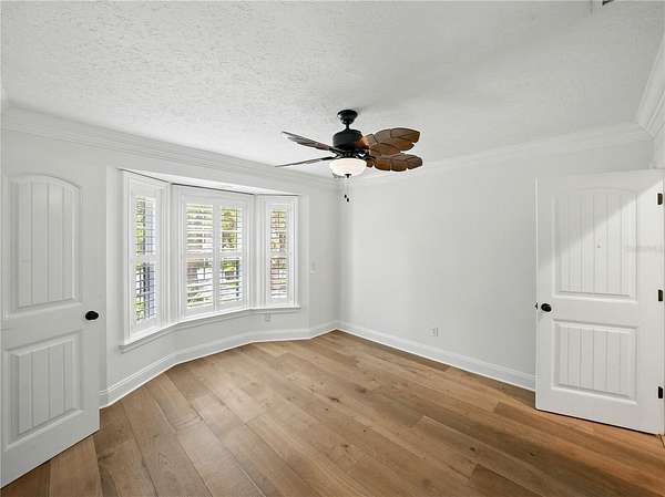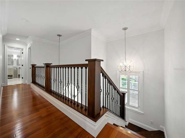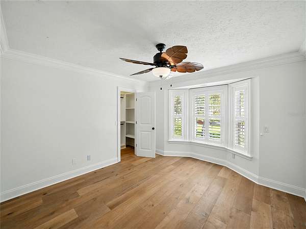 - Ceiling Fans(s), Crown Molding, Eat-In Kitchen, High Ceilings, Kitchen/Family Room Combo, Primary Bedroom Upstairs, Solid Wood Cabinets, Stone Counters, Thermostat, Walk-In Closet(s)