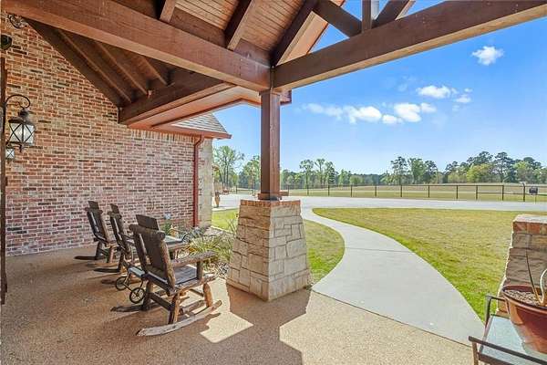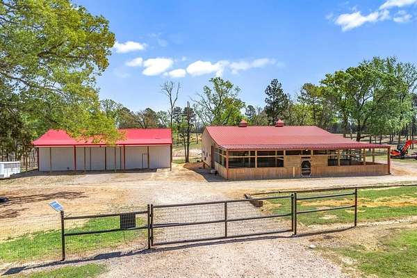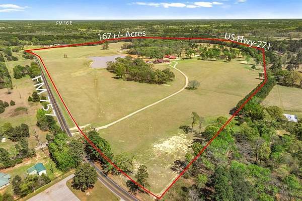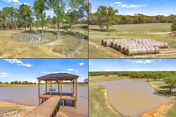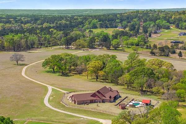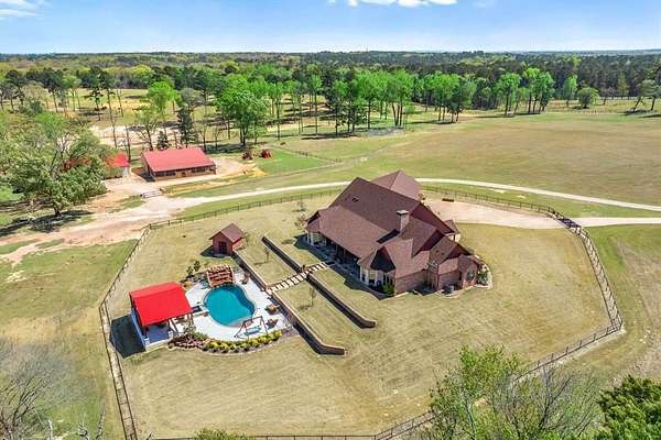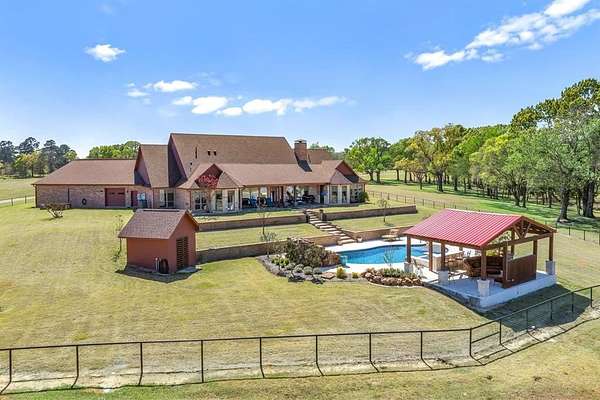 Experience the perfect blend of luxury living and wide open East Texas land on this park like 167± acre ranch in Winona. This property captures everything you are looking for, featuring a beautifully designed 3 bed, 3.1 bath home with 4 car garage plus bonus room or office. Enjoy breathtaking views across rolling pastures, scattered mature trees, a mix of woods and highly improved hay meadows, an over 3 acre lake with fountain, 2 ponds, and fencing with cross fencing for horses and cattle. Additional improvements include whole home Generac generator, working pens, chicken and bird coop, 2 wells for pond fill, pasture irrigation, house and workshop, and dual Farm to Market road frontage. A custom stone electric gated entrance welcomes you to a long winding concrete drive leading to the home. Inside, soaring ceilings, rich wood finishes, and an open concept layout create a warm yet refined space ideal for both everyday living and entertaining. The spacious living area flows into a well appointed kitchen with abundant cabinetry, large island, and upgraded stainless appliances. The primary suite offers a true retreat with spa like bath, dual vanities, oversized shower, and additional space for a sitting area or tanning setup. Guest bedrooms feature private baths and walk in closets for comfort and privacy. Roof replaced 2023. Step outside to a resort style pool with rock waterfall, spa, expansive patio, and covered pergola creating the perfect setting to relax and take in the surrounding views. Additional improvements include a 40x60 workshop with office and bathroom, attached 35x60 chicken and bird house, plus a 30x60 workshop with electric and 13x60 overhang. Ideal for livestock, equestrian use, hunting, fishing, or recreation, this property offers versatility as a working ranch, private retreat, or legacy estate. All just Virtual tour, video tour, and full improvements list available.