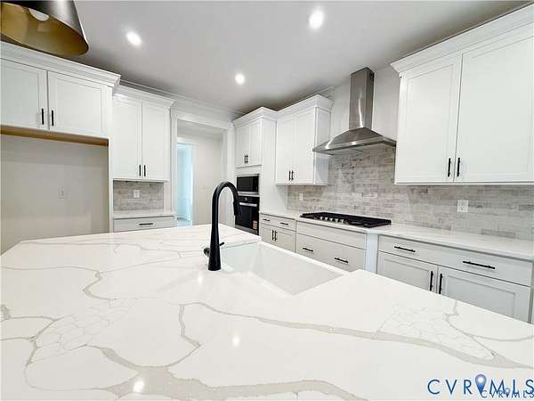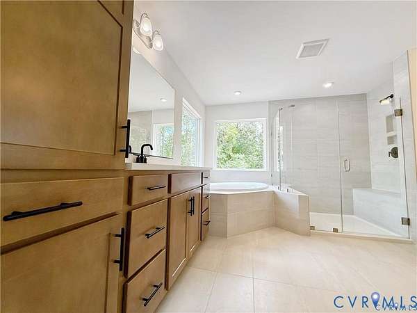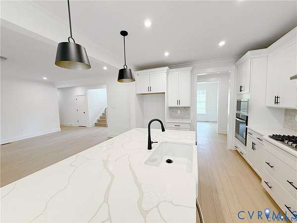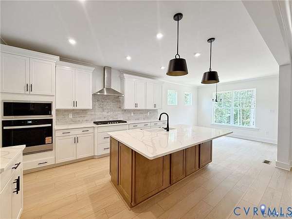 This home is MOVE-IN READY! The Waverly is a stunning home featuring 7 bedrooms, 5.5 baths, and a walk-out basement all situated on an expansive 1.7+ acre lot! As you enter, you'll find a large formal dining room just off the foyer, perfect for hosting. The open-concept design offers a well-appointed kitchen with quartz countertops, a wall oven/microwave, island, walk-in pantry, and a separate breakfast area. The kitchen flows seamlessly into the spacious family room. Home office with French doors. The first-floor guest suite features a spacious ensuite bath. A powder room for guests and a covered rear porch that spans almost the entire back of the home complete the first floor. Upstairs, you'll find four spacious bedrooms, including the primary suite featuring two walk-in closets and an ensuite bath with a double vanity. Bedrooms 2 and 3 share a convenient Jack-and-Jill bath, while Bedroom 4 enjoys its own private bath. The second floor also features a generously sized loft area, perfect for additional living space, and a laundry room. The walk-out basement offers two additional bedrooms that share a full hall bath, a media room, a HUGE rec room, and unfinished storage. The builder will sod the front and side yards, ensuring your new home looks beautiful from day one. Lake Margaret at The Highlands is a charming waterfront hamlet tucked in the lovely golf course community at The Highlands in Chesterfield, VA. In addition to the stunning grounds and facilities at the championship 18-hole golf course, Lake Margaret at The Highlands offers three lakefront pools with a clubhouse, tennis courts, trails, a playground, and two lakes totaling over 100 acres of opportunity for fishing, paddling, and canoeing. Plus, the convenient location between Richmond and Petersburg offers dining, shopping, and entertainment just around the corner.