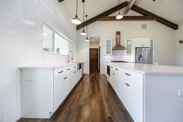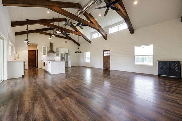 PRICE IMPROVEMENT!! Bring Your Horses! Welcome to this gorgeous 6.28-acre horse property in the coveted Shaw Farms Community -- a rare find that truly won't disappoint. Perched high on a hill, this 3-bedroom, 3-bath home offers sweeping views of the jumping course and potential dressage arena near the entrance. Enjoy endless sunsets from your front or back porch while watching your horses graze. Inside, every detail has been crafted with care. AquaGuard Performance Flooring is waterproof, pet-proof, and kid-proof. Soaring ceilings with exposed hardwood beams create a warm yet airy feel. The bright and open great room is perfect for families who want to stay connected, while the dining room features a one-of-a-kind chandelier that's sure to spark conversation. The modern kitchen boasts endless counter space, perfect for entertaining, along with SMEG stainless steel appliances and abundant windows that frame breathtaking views. Private Primary Wing - The luxurious primary suite occupies its own entire wing of the home, with abundant natural light, an oversized walk-in closet and a spa-inspired marble bath, featuring endless customization potential. Each bathroom in the home is unique, with marble floors and counters and beautiful white tiled walls. The guest bedrooms each have their own en-suite baths for privacy and comfort. The fenced backyard features no-climb fencing, ideal for dogs of any size while keeping them safely away from the paddocks.