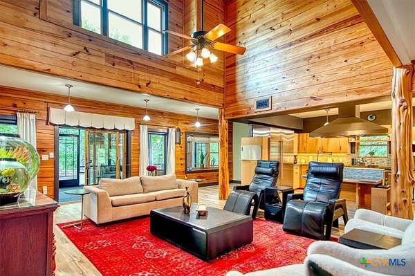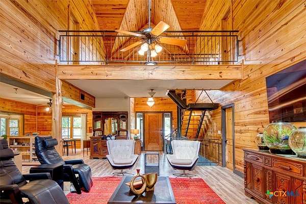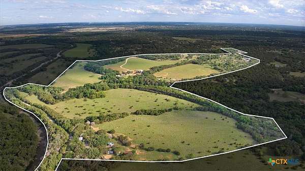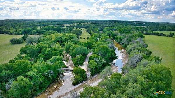 The Ridge at Loafer's Glory Ranch spans approximately 148 acres of unrestricted, ag-exempt land in Central Texas, bordered by Bear Creek and the North Fork of the San Gabriel River. This rare offering combines natural beauty, productive terrain, and strong development potential. The land features a scenic mix of mature hardwoods, live water, and wide-open pastures with fertile silty and gravelly clay loam soils-ideal for grazing, farming, or future improvements. Gently sloping topography drops roughly 100 feet from the front of the property down to the creeks. Mature Live Oaks and Elms dot the landscape. Currently a working cattle ranch, its potential is further enhanced by a 12" waterline across CR 200-opening the door to development. Access is convenient via two entry points: one off Blessing Ranch Road, another from CR 202. The ranch is served by two water wells-one dedicated to the residence and a second for agricultural or future use. The centerpiece is a thoughtfully designed, three-level home blending luxury, resilience, and comfort. The main floor features a chef's kitchen with commercial-grade appliances, a spacious living room, primary suite with en-suite bath, guest bath, laundry room, and a screened wraparound porch with expansive views. Upstairs includes a loft landing, two large bedrooms, and two full baths. The fully finished basement features two more bedrooms, a full bath, media and fitness areas, game space, a Category 4-rated shelter, and a dedicated Category 5 storm room. Heated floors in all bathrooms add year-round comfort. Located in the acclaimed Liberty Hill ISD, this versatile property is ideal as a legacy ranch, private retreat, or investment in future growth.