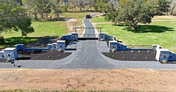 Davey Grove Ranch is the epitome of country living with proximity to some of the best golf and sporting clubs the state has to offer. This 45-acre property comes complete with a gorgeous home, scattered woods, and a beautiful pond, all within 8 miles of Columbus, Texas. The established nearby towns and continually expanding amenities make this ranch a perfect opportunity for both a weekend retreat or a full time residence. IMPROVEMENTS: The signature piece of the property is undoubtedly the gorgeous 4,719 square foot, custom-built home. A newly completed stone entrance with gravel drive set the tone as you drive up to this gorgeous property. Underground power, on-site propane, and a whole-home generator are just a few of the thoughtful additions. Interior Features The custom 5-bedroom home was meticulously designed and built with family and entertaining in mind. As you step through the front door, you're greeted by a massive living room, dining room, and kitchen, molding into a bright, open-concept area. To your right, a private office provides a quiet retreat for work or study. Vaulted ceilings above the connected kitchen, dining, and living areas, and large windows flood the home with natural light and long shadows, bringing the beauty of the surrounding landscapes inside. A breakfast room off the kitchen offers beautiful views of the pool, backyard, and pond. The gourmet kitchen features a full range, a walk-in pantry discreetly hidden behind faux cabinet doors, a massive island, and endless cabinet space. Just past the kitchen, a convenient half bath, laundry room, and an expansive mud room lead directly to the sheetrocked and well-lit garage. A versatile converted workout room offers flexibility as an additional office or customizable space to suit your needs. The master suite, tucked away at the rear of the home, creates privacy with its own foyer and views of the pool and backyard. The master bath has his-and-hers sinks positioned opposite each other and is complemented by an extra-large shower and soaking tub. The family room, accessible from the living area, is designed for comfort and entertainment, featuring an oversized sectional, TV, and well thought out shelves and cabinets for books and board games. Hookups for a secondary laundry with a stackable set are thoughtfully included on this side of the house. Two large bedrooms with front yard views share a full bath off the family room, while two additional bedrooms are connected by a full Jack-and-Jill bath, perfect for family or guests. Wide-panel wood flooring flows seamlessly throughout the home, creating a warm, cohesive feel that ties the whole home together. Outdoor Living Sliding glass doors from the living area open onto a vacation-like patio. The covered outdoor dining area features a large island with a built-in cooktop, large wooden dining table, and comfortable outdoor furniture perfect for kicking back to watch Gutfeld, the Masters, or your favorite college football team. Large stone tiles surround a beautiful, deep blue pool with a hot tub and beach entrance. Beyond the pool, a manicured grove, shaded by trimmed live oaks, extends to an expansive lake, offering a picturesque backdrop that complements the beautiful home and patio.