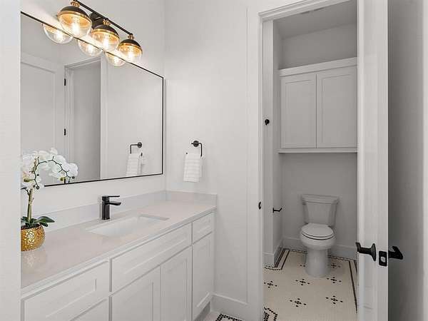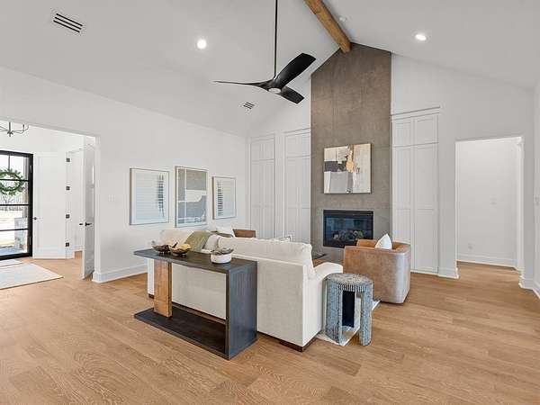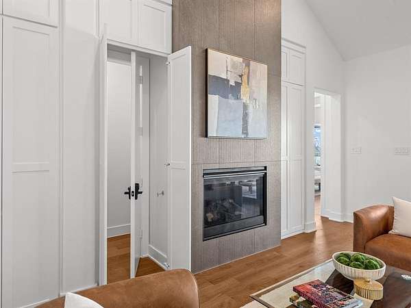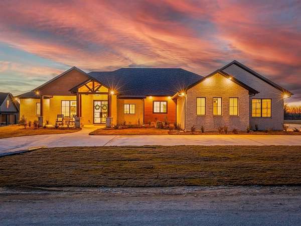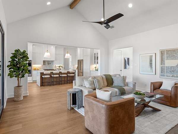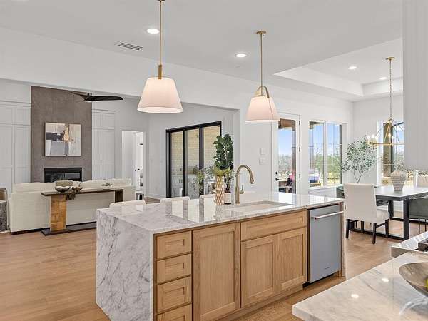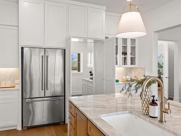 Discover The Alpine, a masterfully designed estate on nearly two acres by premier builder Parks-Hatherley. A timeless iron double-door entry opens to an expansive open-concept layout showcasing real wood flooring and designer lighting throughout. The heart of the home is a chef's kitchen featuring a dramatic waterfall island, premium KitchenAid appliances, a 6-burner gas range with pot filler, drawer microwave, soft-close real wood cabinetry, solid granite backsplash, under-cabinet lighting, and a hidden walk-in pantry with built-ins, pantry waterline, and electrical outlets. Designed for both daily living and entertaining, the family room is wired for surround sound and wall-mount TV readiness and anchored by a gas fireplace with custom built-in cabinetry. A private office with French doors offers flexibility for work or study. The luxurious primary suite serves as a true retreat with a spa-inspired bath featuring twin showers with dual and handheld heads, a freestanding soaker tub, his-and-hers sinks with open towel shelving, oversized vanities, and extra-large mirrors. Outdoor living shines with a large patio slider leading to a fully equipped outdoor kitchen complete with a Coyote grill, refrigerator, and storage. Additional upgrades include whole-home water filtration, 200 Amp electrical service with EV charging capability, extra garage storage, a hidden safe room with keypad entry, and custom cabinetry in the laundry and mud room. This exceptional property blends refined design with modern functionality in a peaceful private setting just minutes from city conveniences. Seller is offering a lender interest rate buydown with preferred lender