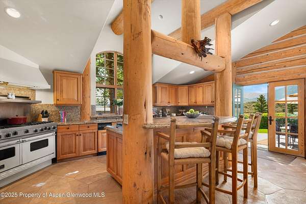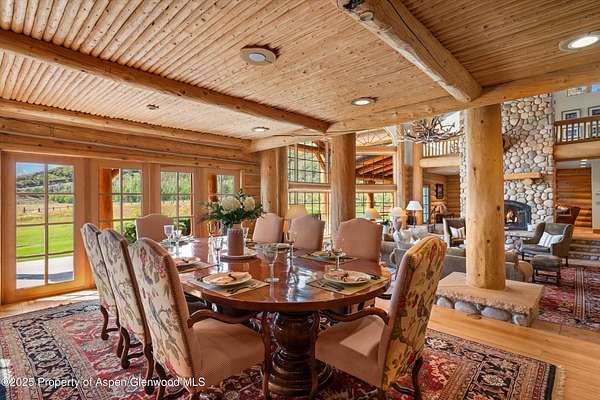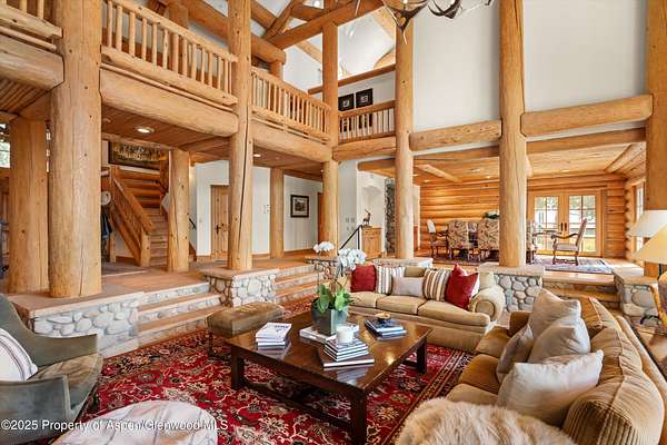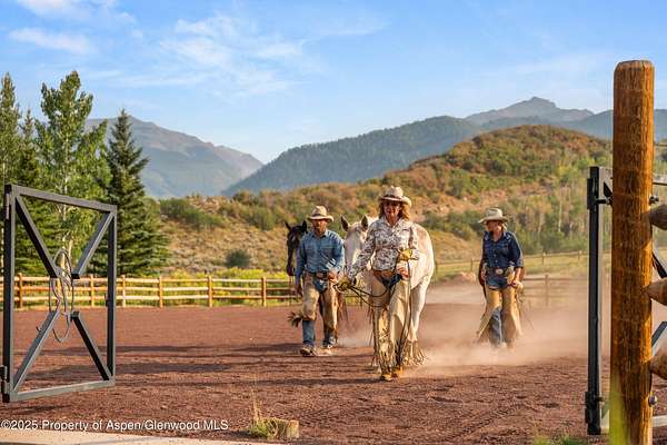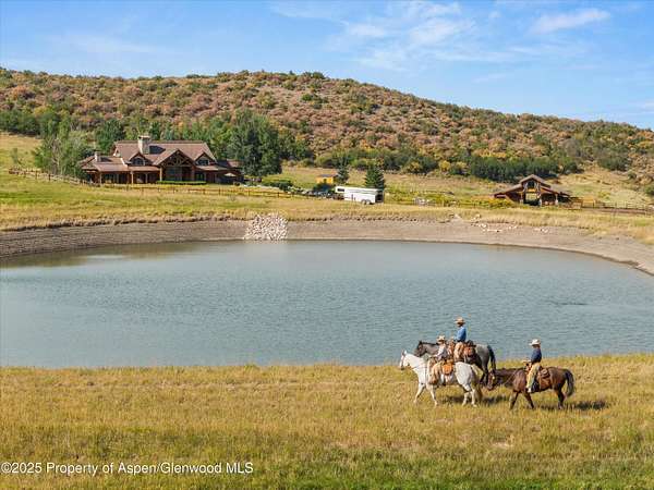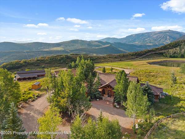 Welcome to QTR Ranch - a magical 107+ acre equestrian estate set high above Old Snowmass with commanding views of Snowmass Mountain and the Elk Mountain Range, all just 35 minutes from downtown Aspen. This legacy ranch offers the perfect balance of refined mountain living, natural beauty, and unmatched privacy. The centerpiece is a stunning six-bedroom residence designed for comfort and entertaining. Equestrian facilities include an eight-stall barn, a spectacular riding ring, and ample pastureland. A two-acre pond and significant water rights further enhance the property's unique appeal. Adding to its rarity, the ranch encompasses two separately deeded lots with vested rights to build an additional 5,750-square-foot home-creating the opportunity for a true family compound or generational retreat. The grand log home is the quintessential classic mountain estate designed with soaring cathedral ceilings centered on the dramatic mountain views framing the lush pastures in the foreground. It features six bedrooms and seven baths, including a main-floor primary suite with direct outdoor access and stunning views. The layout is thoughtfully designed with the entire main-level living, kitchen and dining spaces opening to a gracious large terrace, creating seamless indoor-outdoor flow. An elegant bar room, private office, wood-burning stone fireplace, four en-suite guest bedrooms, and a spacious bunk room with a king Wilding Wallbed and private bath provide ample space for entertaining and retreat. A heated and finished two-car garage provides convenience and comfort, plus a brand new DaVinci roof and 7 seat hot tub installed in June 2025. At the heart of this ranch's equestrian amenities is a remarkable 3,080-square-foot, eight-stall barn built in 2007. Designed with both beauty and function in mind, it offers individual stalls with turnouts, rubber pavers and mats, a wash stall, tack room, spacious hayloft, and an office with a full bath. Complementing the barn is a premier riding arena with a lava floor, along with fully fenced pastures that complete the equestrian setting. The property is also home to an expansive flat lawn leading to a grand, aerated pond with a sand beach perfect for swimming, paddle boarding, kayaking or just relaxing by the water. A charming gazebo at the top of the property offers 360 degree views from Snowmass Mountain to the Old Snowmass Monastery and beyond, creating an unmatched setting for sunset views. Designed for year-round enjoyment, the estate includes multiple outdoor living and dining spaces, adjudicated water rights, a private well, and an intricate irrigation system that nourishes lush landscaping and produces fresh hay each summer. Comprising two legal parcel, one of which allows for the construction of a 5,750 square foot additional residence, the estate offers both flexibility and long-term potential for a family compound. Located just minutes from the Snowmass Lakes Trailhead and the Campground Ski Lift at Snowmass Mountain and a 35 minute drive to Aspen and Snowmass Village, QTR Ranch perfectly balances privacy with access to world-class recreation. Whether horseback riding through your private pastures, paddling across the pond, exploring trails on an ATV or simply taking in the alpine glow from your outdoor terrace, this is a property that celebrates the Colorado lifestyle in all its forms!