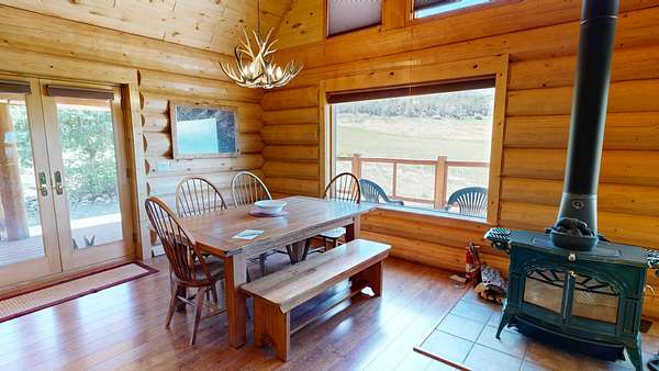 The property has been thoughtfully improved to support year-round living and agricultural use, with water rights that support irrigation of approximately 50-60 acres. German Creek flows through the ranch and there are water shares in two mountain reservoirs and multiple natural adjudicated springs.