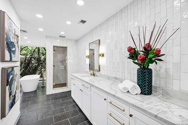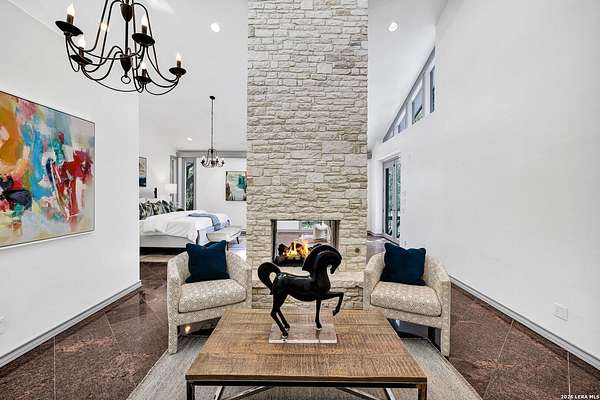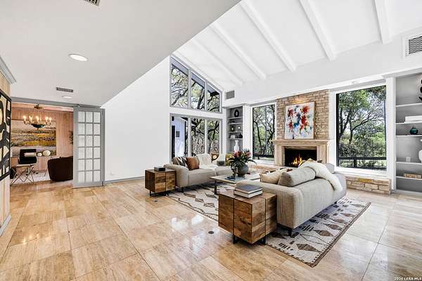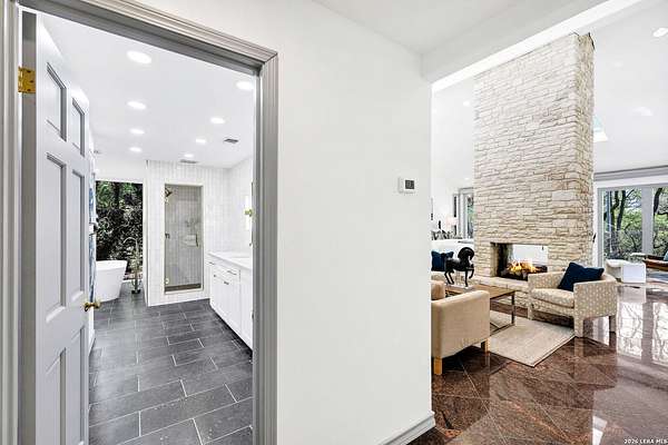 Est $11,537/moLush Treed-Compound Estate inside Loop 1604. 3.45 acres., 6,700 sgft., Private Gated Entry. 5 bedroom, 6.5 bathrooms, 3-car garage, lighted artificial grass tennis court, pool, spa, steam shower, dedicated gym, and detached guest apartment. This home has been extensively remodeled/updated. An extraordinary home.