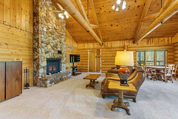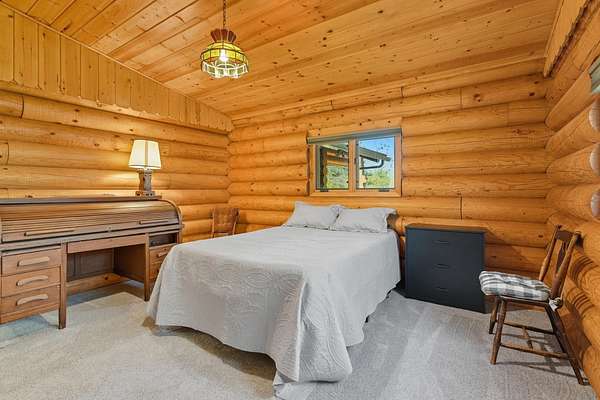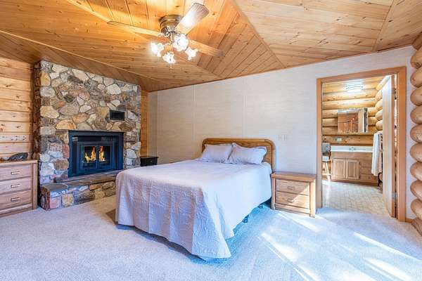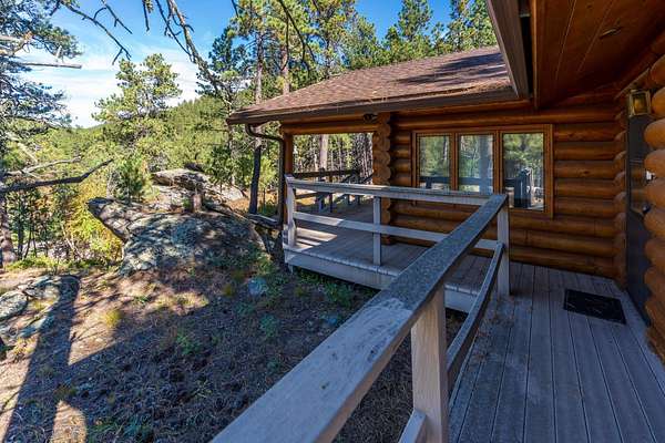 A TRUE BLACK HILLS DIAMOND IN THE ROUGH! A fabulous genuine log cabin home perfectly nestled amongst ponderosa pine trees and granite rock outcroppings on over 10 acres with astounding Black Hills beauty and bordered by hundreds of acres of USFS lands! Log-beamed, vaulted ceiling decorates the sun-splashed huge great room with floor-to-ceiling stone-encased 2-sided wood-burning fireplace and new carpet that extends throughout the main level. Efficient kitchen has a wonderful pantry and offers a substantial amount of countertops, cabinets, newer stainless steel appliances, and a cozy dining room area. Dreamy master suite offers a cozy, stone-encased wood-burning fireplace, deck access and a private bathroom with walk-in shower. 2 more great-sized bedrooms, full bathroom, plus toilet closet and laundry on the main level. Expansive, unfinished walkout basement with stained concrete floor & chairlift leaves room for a creative finish and a building up of equity. Wrap-around deck that offers both covered and open areas, as well as a switchback staircase down to the 2-stall detached garage. The land has rock outcroppings galore, varied terrain, and the BEAUTIFUL VIEWS that the Black Hills are made of. Just off of paved Old Hill City Road means you're minutes from Keystone and Hill City! This is an "as is" estate sale with lots of work done and lots left to do! Come have a look and bring your dreams in tow!!