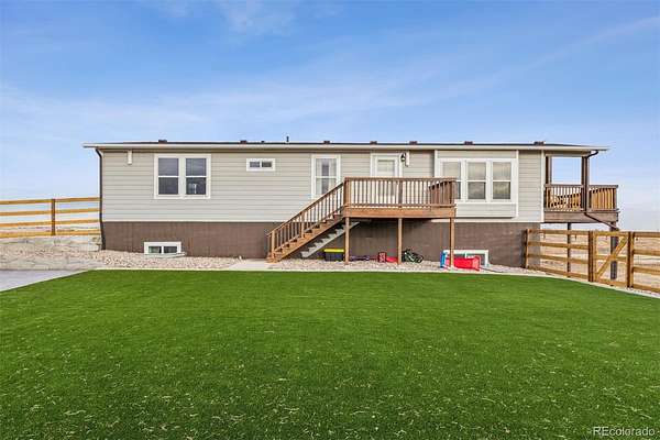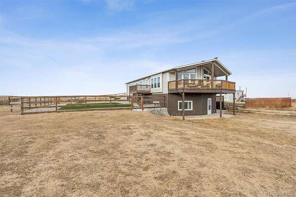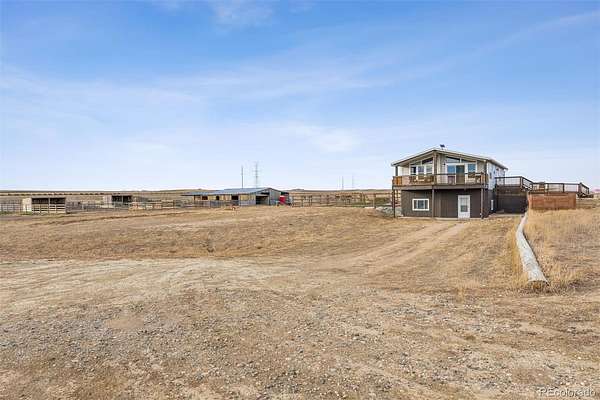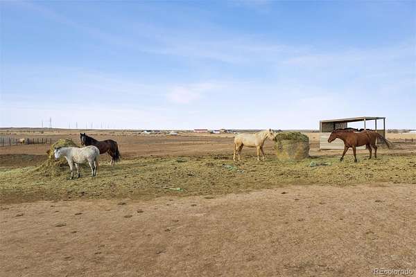 Back on the market, and no fault of home, contingent buyer did not get their home listed. Stunning equestrian estate on 48+ acres with panoramic views of the Colorado Rocky Mountains. This updated ranch style home with a walkout basement features an open floor plan with floor to ceiling windows, a spacious living and dining area, and a fully updated kitchen with a large island and gas stove. The main level includes the primary suite and two additional bedrooms. Recent improvements include refinished wood floors, new interior and exterior paint, updated decking with some Trex, a new turf backyard, new yard fencing, and added mini splits for comfort and efficiency. The walkout basement offers two additional bedrooms, a full bathroom, flex or office space, a laundry room, and a kitchenette, creating an ideal setup for multigenerational living, a mother in law suite, or rental income. Equestrian facilities are exceptional. The 48x44 barn includes three 16x16 stalls with 32 foot runs, a large tack room, and feed storage. The property features multiple pastures and paddocks designed for rotational grazing and easy livestock management. Several lean to shelters include electrical access and automatic waterers, and a separate small animal pen accommodates goats, pigs, chickens, or quarantine needs. Additional hay storage buildings and equipment bays add convenience. The 150x250 roping arena with alleyways is ready for training and events. A full circle driveway allows easy access for large trailers and semis. A detached garage and shop with a powered loft provides additional storage and workspace. Located just 15 minutes from Fort Collins, Windsor, and Eaton, this move in ready property offers an exceptional blend of acreage, views, and equestrian amenities.