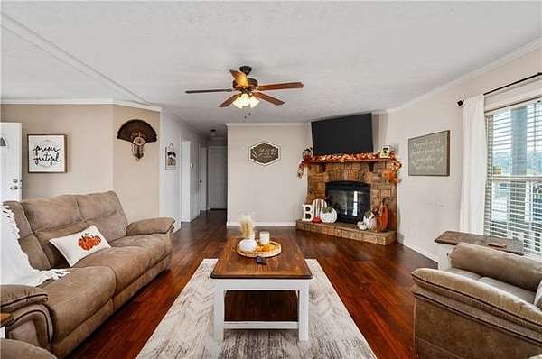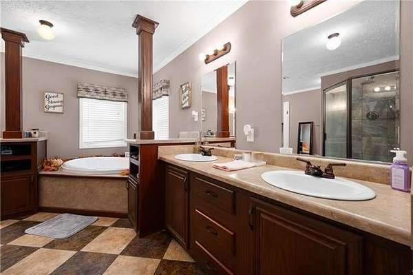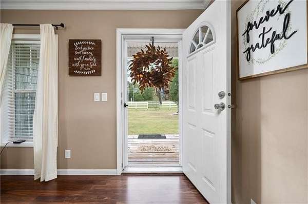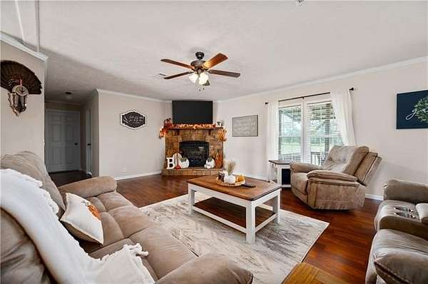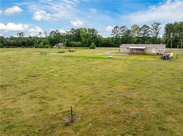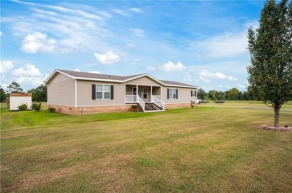Come see this 2015 doublewide set on 2 acres in a quiet Florien location. The home has sheetrock walls and neutral colors throughout. The living room features a gas stone fireplace and flows into a spacious kitchen with a center island bar that works well for casual meals or gathering with friends. The split layout offers oversized bedrooms with walk in closets in each room. The main bathroom includes a garden tub, double sinks, a separate shower, and a vanity area. The walk in laundry room has built ins for coats and shoes. A built in front porch and a back porch provide comfortable spots to sit and take in the views of open pastures. A white picket fence adds charm across the front of the property and an ahearn building on skids will remain. This home combines everyday convenience with a peaceful country setting.