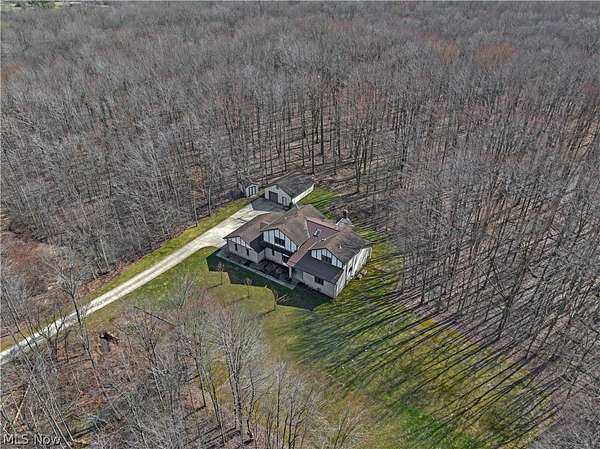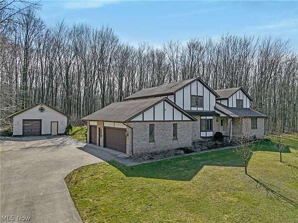 Tucked away on 10 private, wooded acres, this exceptional custom-built home offers the perfect blend of luxury craftsmanship and natural serenity. From the moment you step into the grand foyer, you'll be captivated by the gleaming marble flooring and the warmth of rich, solid oak hardwood that flows throughout the entire home. Built by a master carpenter, solid oak millwork and trim frame every door and window, lending timeless elegance throughout. The kitchen features custom oak cabinetry with a Sub-Zero refridgerator and with an abundance of counter space and an open, thoughtfully designed layout, there is plenty of room to move, cook, and entertain with ease, while the soaring great room impresses with dramatic vaulted ceilings and skylights that bathe the space in natural light and offer breathtaking views of the surrounding woods. The first-floor master suite with its vaulted ceiling, offers a spa inspired glamour bath, while three generously sized upstairs bedrooms each feature walk-in closets. The 12-course full basement is partially finished and ready for your vision. Modern comforts include a whole-home central vacuum system, zoned heating, and ultra high-speed fiber internet via Kinetic by Windstream. Outside, a large vinyl-sided barn with a upper level provides outstanding storage or hobby space. A rare opportunity to own a truly handcrafted home where no detail was overlooked.