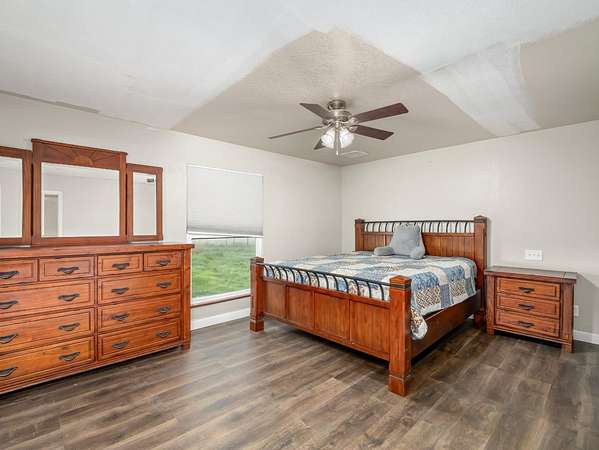 Welcome to Academy Hills living! This 3-bedroom, 2-bath home sits on just over 2 acres in a peaceful cul-de-sac on Clovis' eastern edge. Enjoy breathtaking sunset views and open skies. The remodeled kitchen features stylish finishes, tile flooring, and a gas range perfect for home chefs. Laminate floors flow through the living room and primary bedroom, adding warmth and modern appeal. A scenic bridle trail borders the western part of the property, ideal for riding horses. The backyard is a canvas that offers plenty of room to expand, garden, or welcome your livestock. Experience country comfort with the convenience of Clovis amenities just minutes away.