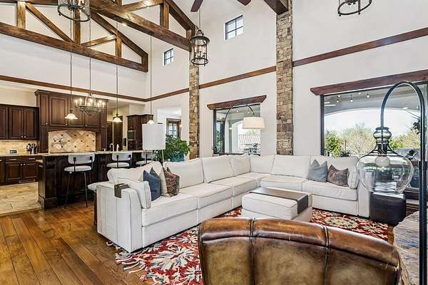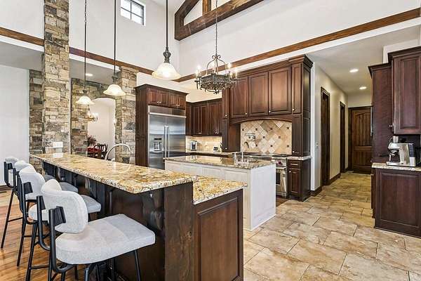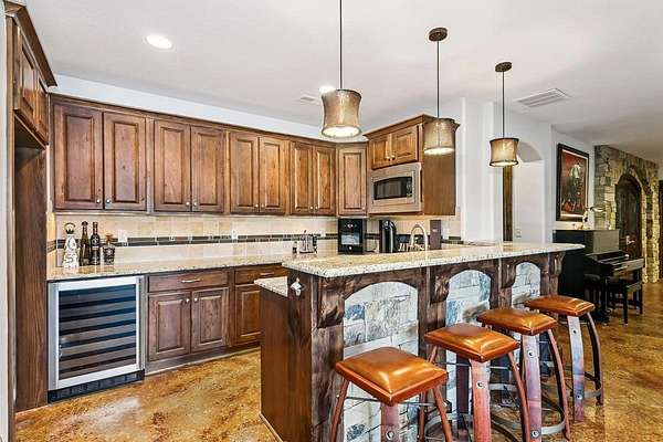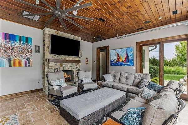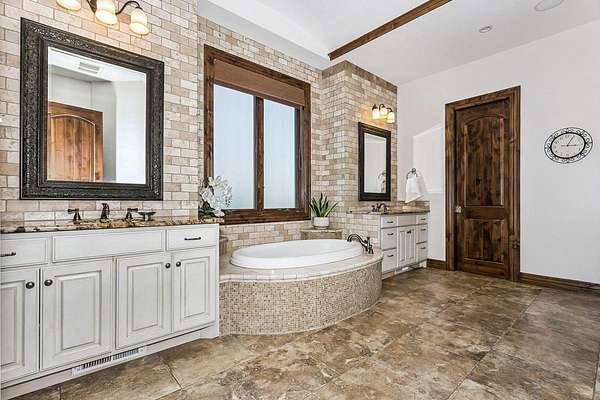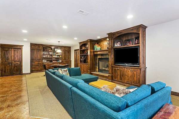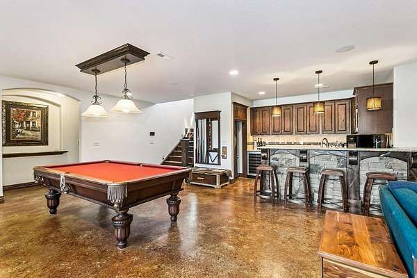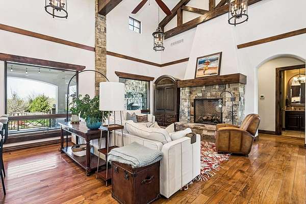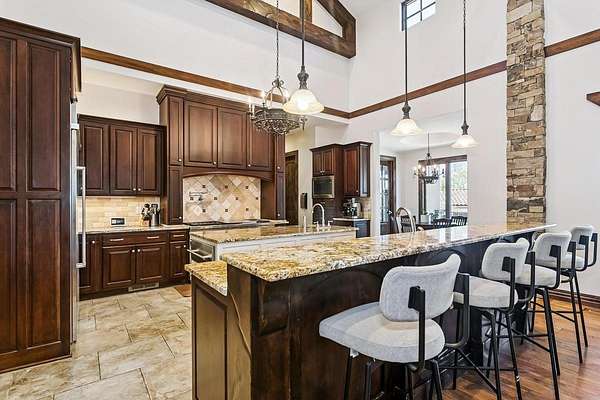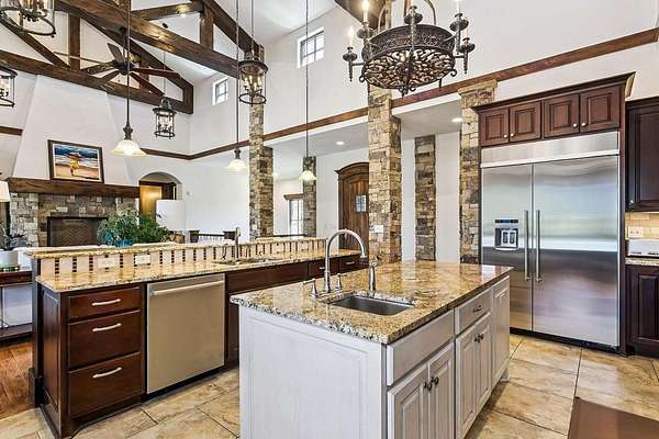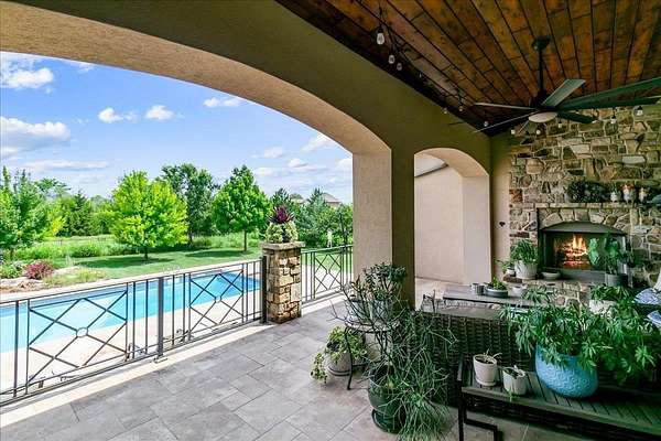 Welcome to this extraordinary Doug Buchanan custom-built estate, a true masterpiece designed with every possible amenity and detail for luxurious living. Brand new interior paint throughout most of the main floor and the basement rec room! From the moment you walk through the front courtyard and the custom front door, you are surrounded by the warmth of rich wood and tile floors, the grandeur of vaulted beamed ceilings, the elegance of solid wood doors throughout, and the timeless beauty of stone columns and custom millwork. Multiple fireplaces and exquisite built-ins elevate the home's character, creating an ambiance of sophistication and comfort throughout. The main level offers a grand living room with a soaring floor-to-ceiling fireplace and custom built-ins, grand formal dining, not 1 but 2 private offices, and 2 powder rooms on the main floor. The chef's kitchen is a dream, equipped with professional-grade Wolf appliances including a six-burner range and double ovens, dual islands, a warming drawer, built-in refrigerator, vent hood, and walk-in pantry. The sunlit breakfast room frames breathtaking views of the backyard, while the lavish owner's suite provides a spa-inspired retreat with a fireplace in the bedroom and a private bath with walk-in tile shower featuring multiple shower heads, a make-up vanity, and his-and-hers walk-in closets. A private guest suite with its own bath and walk-in closet, spacious drop zone & a laundry room complete the main level. The finished walk-out lower level is designed for entertaining, boasting a spacious rec room with fireplace and wet bar, a home gym, 4 bedrooms, 3.5 bathrooms, a guest-ready theater room with bar seating and theater chairs & plenty of storage with 2nd set of washer/dryer hookups. Step outside to enjoy your private resort: a covered tile deck with fireplace and built-in grill, a lower-level covered patio with hot tub, a fire pit surrounded by stone seating, a wisteria draped lanai, a 20x55 pool with diving board, iron fencing & raised planting beds. The 1,016 sq. ft. pool house elevates this space and offers its own kitchen, fireplace, bathroom and additional living quarters-perfect for extended stays or creating a private retreat of your own. Attached to the back of the pool house is a large space for a mower, pool equipment & toys. Professional landscaping is enhanced by a full sprinkler and irrigation system supplied by a private well, ensuring beauty all season long. Set on a spectacular 1.6-acre cul-de-sac lot, the stucco and stone exterior is as striking as it is enduring, with a side-load four-car garage completing the picture. This home is not simply a residence-it is a statement of style, comfort, and distinction, offering a lifestyle beyond compare. Basement sq. ft. estimated.