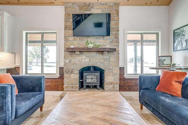 Looking for Character, Charm & History without losing modern day luxury, efficiency & layout: you've found it here in Peaster ISD! This solid 1947 build has been lovingly remodeled to current code & efficiency that affords you incredibly low electricity monthly bills. Without losing the square footage & privacy for your family. Downstairs offers 2 Living areas, wood burning fireplace for those cold weather days, oversized Dining Room space & huge open layout kitchen with vaulted ceilings for added wow factor when entertaining. 3 downstairs bedrooms offer easy accessibility - both guest bedrooms downstairs are 16FT by 16FT. Primary suite downstairs offers a huge ensuite full bathroom with walk in shower & separate soaker tub (full size!) with double vanities & closets. Upstairs is a self contained living space, perfect for family members looking for space or longer staying guests! Full bathroom, large bedroom with its own walkout balcony & double closets, large living area with kitchen. Entertaining space is large enough for any party your heart desires with the covered back patio overlooking the spacious shaded yard. Want a change of scenery, relax on the full length covered front porch overlooking the 2nd well on the property at the authentic Windmill. Front Orchard offers peach & cherry trees as well as large producing Pecan trees scattered throughout. Three RV hookups on the property, 1x 30amp, 2 x 50amp (separate locations). 2 level areas for Arena install. Great area to install a Pool by the back deck. Easily cross fence for rotational horse turnout pastures. 2000sqft shop (45x45) with power can cater to all your hobby desires, especially with its fully enclosed workshop room, that can also serve as a storm shelter space. Second barn (20x40 800sqft)- currently used as a run in shelter for livestock & horses has a concrete base & power. Ask for the Updates & Utilities List! Property can sell as 5.5, 10 or 22 acres - ask for info. Full Paint Allowance available.