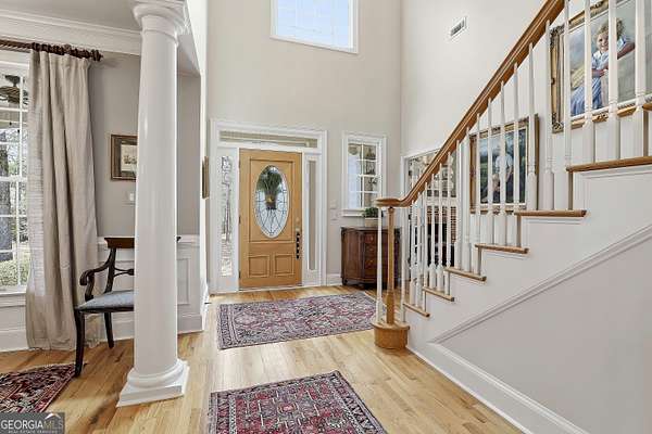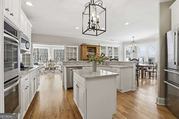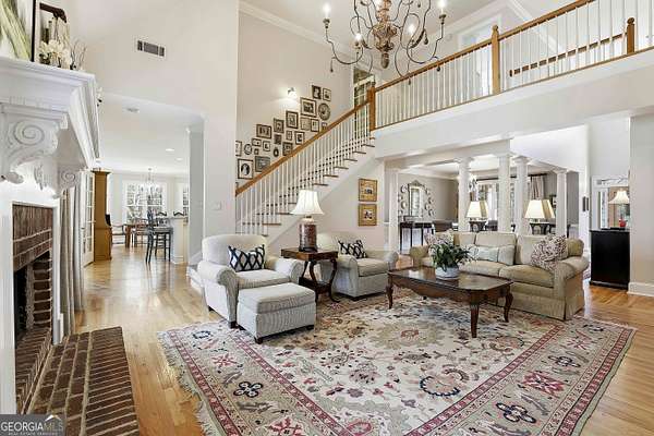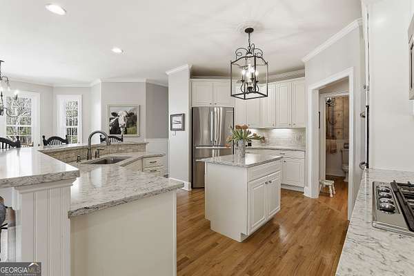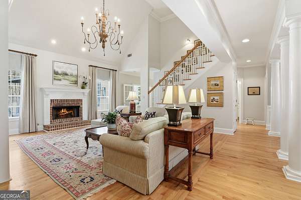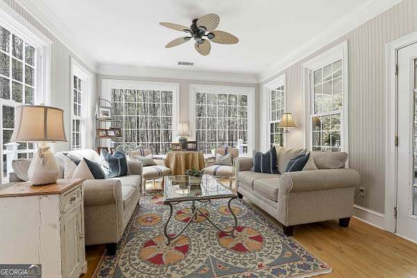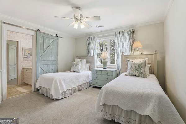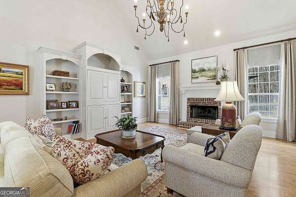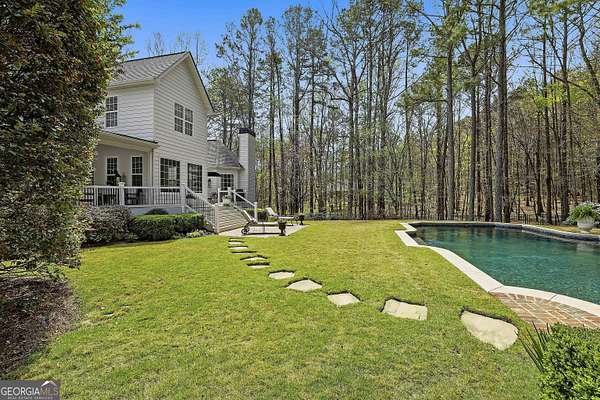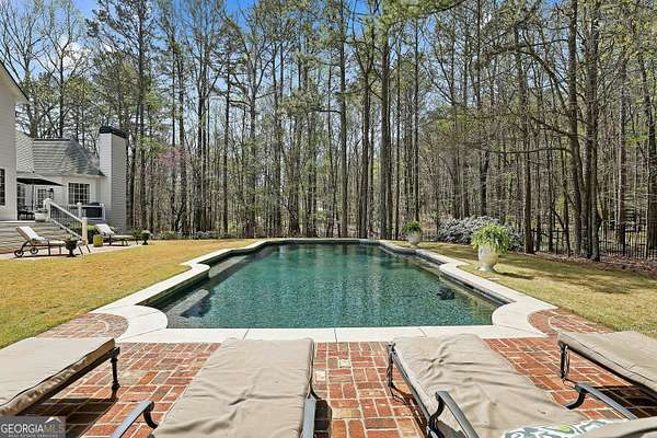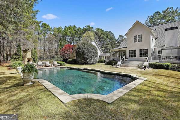 Welcome to an extraordinary luxury retreat in the heart of Peachtree City, perfectly situated on 3 private acres with no HOA-offering both exclusivity and freedom. This stunning property boasts over 6,000 square feet of beautifully maintained living space, featuring 7 spacious bedrooms and 5.5 bathrooms designed for comfort and elegance. The thoughtfully designed layout includes a detached carriage house with a 2-car garage and private guest suite above, seamlessly connected to the main home by a charming covered breezeway-ideal for guests or multi-generational living. Step outside to your own private oasis, complete with a heated saltwater PebbleTec pool with grass edge detailing, surrounded by serene, wooded privacy. Enjoy year-round outdoor living with a covered porch perfect for morning coffee, large open deck perfect for barbecues, an inviting outdoor fireplace for crisp fall evenings. Inside, the home showcases updated kitchen and bathrooms, combining modern finishes with timeless style. Entertain with ease in multiple living areas, enhanced by three gas fireplaces throughout the home. A gorgeous sunroom just off the kitchen is another excellent space to look out and enjoy the backyard retreat! The partially finished basement offers incredible versatility, featuring a media room, game room, home gym, additional guest suite, and an abundance of storage or flex space. Practical upgrades include a roof and all three HVAC systems that are 6 years old or newer, providing peace of mind for years to come. Two laundry rooms add convenience to this expansive home. This rare property delivers luxury, space, and privacy in one of South Atlanta's most desirable communities-an exceptional opportunity to own a truly remarkable home. Sellers preferred lender is offering a lender credit of $3,000.00 or 1% of the loan amount (whichever is less). Lender Contact: Kyle Cameron, Fairway Home Mortgage NMLS: 1610121 Phone: / Email: Website to APPLY: Equal Housing Opportunity