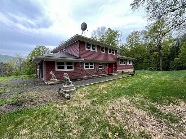 Escape the ordinary in this enchanting 1963 mid-century modern retreat just outside Margaretville, set on 20 serene acres bordering 35 acres of pristine NYC DEP land. A rare find for those seeking character, this eclectic 3BR, 3.5BA home blends vintage charm with thoughtful updates-including a stunning newly renovated kitchen perfect for culinary inspiration. Spacious bonus rooms invite creativity, while the attached garage adds convenience. If you're weary of cookie-cutter houses, you'll fall in love with this home's soul. A grand dairy barn, with a finished main floor, offers endless potential-studio, workshop, or what ever, Much love has been poured in, with just a bit left to make it your own. A true Catskills gem waiting to be discovered.