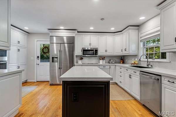 Tucked away on nearly 3 secluded acres in a quiet cul-de-sac in Sunset Hills, this exceptional ranch-style estate offers the rare blend of privacy, space, and effortless main-floor living—all within the highly sought-after Lindbergh School District.