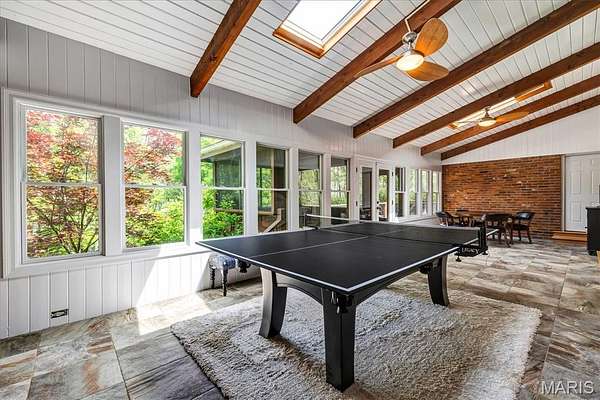 From the moment you step inside, you’re welcomed by warm, inviting living spaces—a wood-burning fireplace, a sun-drenched bonus recreation area just off the living room with abundant natural light, and access to a charming screened-in porch. An elegant dining area sets the stage for hosting, while the updated kitchen shines with stainless steel appliances and a double oven, blending style and function seamlessly.