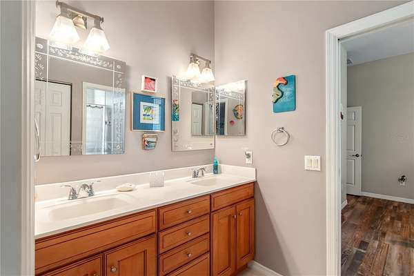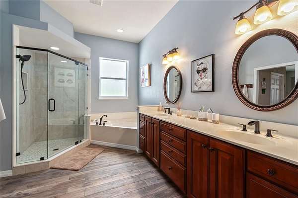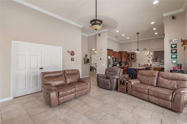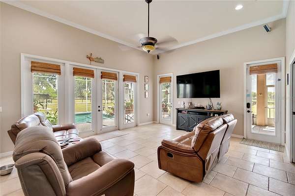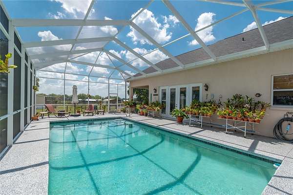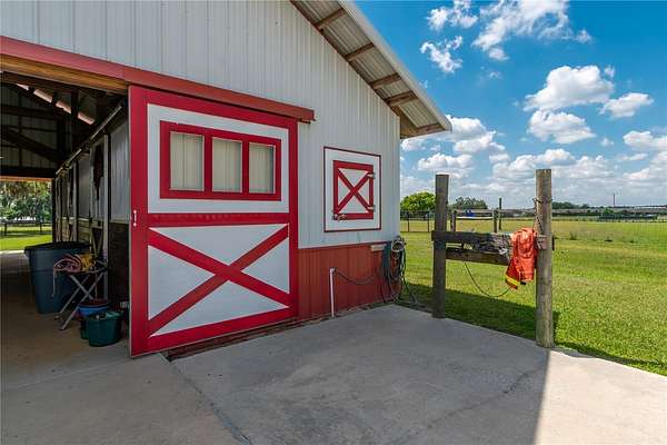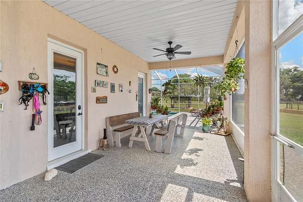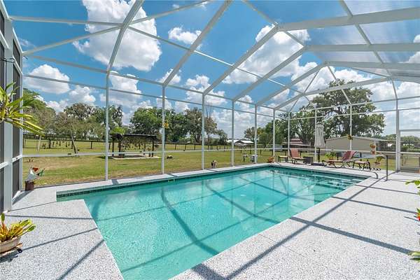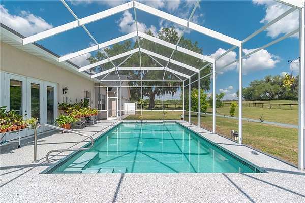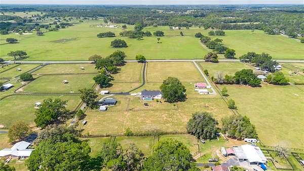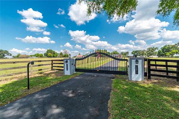 Set on 12-acres in Central Florida’s renowned horse country, this fully equipped horse farm offers a comprehensive blend of functionality, comfort, and thoughtful design. Fenced and gated, the property features two entrances– one leading towards the residences and the other to the barn and workshop. The main residence is a spacious, custom 4-bedroom, 3-bath home that features a covered front porch, attractive brick exterior accents, and over 3,000 sqft of space. The interiors are defined by abundant natural light, tall ceilings, and ceramic tile flooring throughout, making the space warm and inviting. Placed between the formal dining room and the main living area, the kitchen is thoughtfully appointed with stainless steel appliances, extensive cabinet storage and counter space, a center island with breakfast bar and wine storage, and an additional pantry. All bedrooms are well-sized and versatile, but the primary suite provides a true retreat with a large layout, walk-in closet, and a private en-suite bath with soaking tub, glass-door shower, and dual sinks. Step outside to enjoy a screened-in, in-ground pool with expansive deck space, along with covered and screened porches that overlook the surrounding pastures. With its own gate and fenced-in yards, a secondary home is also established on the property, offering a total of 3-bedrooms and 2-baths and luxury vinyl flooring throughout– an ideal option for long-term guests, seasonal rental space, or for a farm manager. For equestrians, the 6 stall center aisle equipped with fly spray system, automatic waterers, and wash rack provides plenty of room for horses, with an additional storage shed located just outside for additional tack or feed storage. A total of 4-paddocks with automatic waterers are currently in-place, providing ample opportunity to train year-round, further divide into smaller paddocks, or even establish an arena or round pen as desired. A large 3 bay workshop with bathroom is also in place, complete with an additional studio apartment with a kitchenette and washer/dryer, as well as a separate remodeled 1 bedroom RV with outdoor deck, both of which are currently listed on AIRBNB as income producing properties. Located just a few minutes from Sweet Dixie South and Majestic Oaks and a short drive from both the World Equestrian Center (WEC) and HITS, this farm is ideal for a variety of disciplines looking to get the most out of Horse Country!