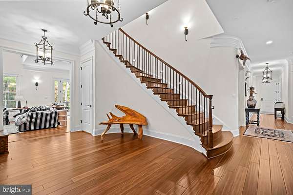 - Bar, Breakfast Area, Built-Ins, Ceiling Fan(s), Chair Railings, Crown Moldings, Curved Staircase, Dining Area, Entry Level Bedroom, Exposed Beams, Family Room Off Kitchen, Formal/Separate Dining Room, Gourmet Kitchen, Island Kitchen, Open Floor Plan, Pantry, Primary Bath(s), Recessed Lighting, Soaking Tub Bathroom, Stall Shower Bathroom, Tub Shower Bathroom, Upgraded Countertops, Wainscotting, Walk-In Closet(s), Walk-In Shower Bathroom, Water Treat System, Wet/Dry Bar, Wine Storage, Wood Floors