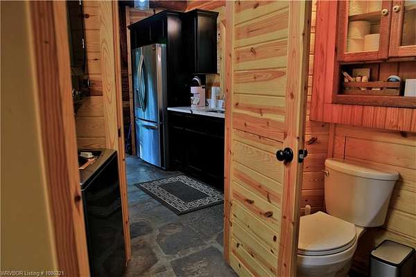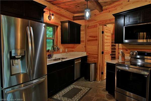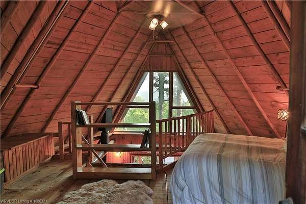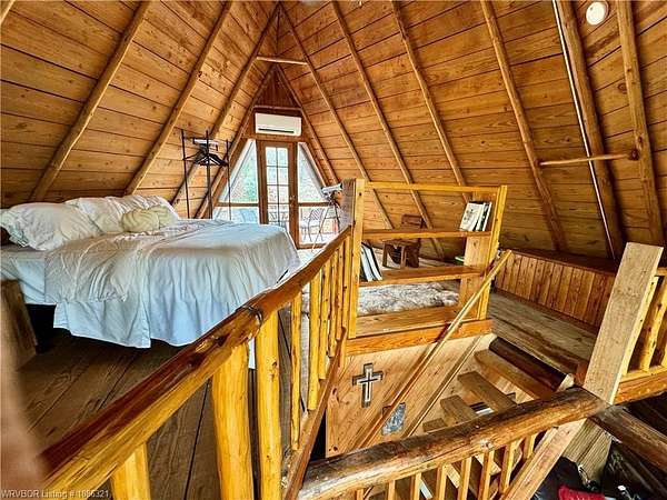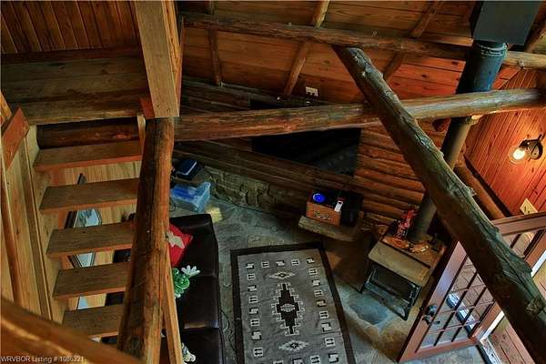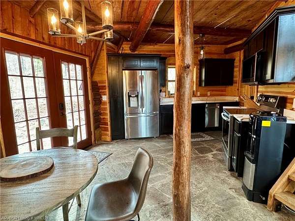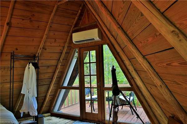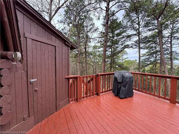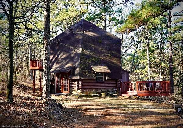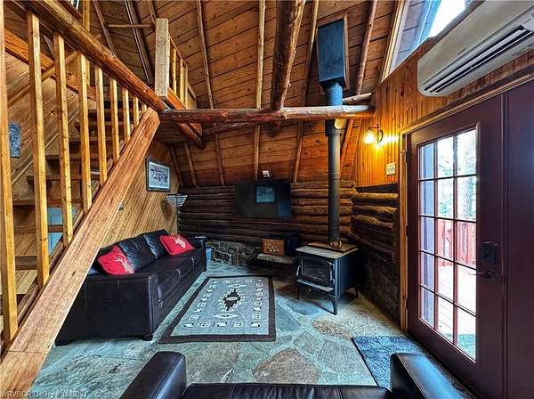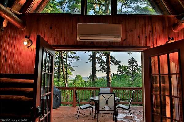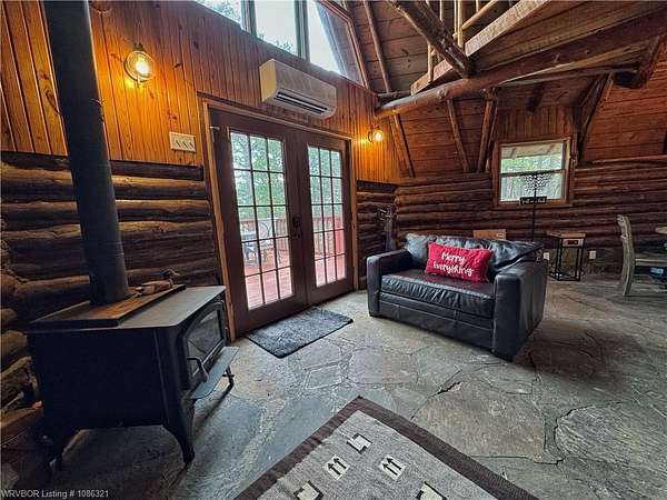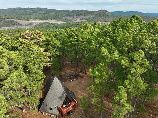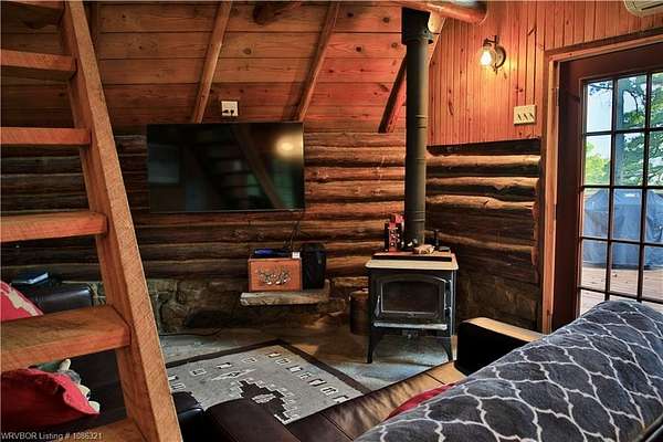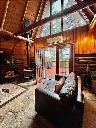 A rare investment opportunity, this one-of-a-kind custom hexagon lodge cabin in Red Oak, Oklahoma offers exceptional potential as a short-term rental, Airbnb, or unique mountain-side vacation retreat. Situated on 3.32 private, wooded acres along a well-maintained county road, the cabin is perched on the mountainside with mountain views, abundant pine trees, and a peaceful, secluded setting guests actively seek. The thoughtfully designed interior features unique real stone flooring, a loft bedroom and one full bath, and extensive renovations throughout completed in 2023 and 2025. The fully remodeled kitchen showcases custom all-wood soft-close cabinetry, quartz countertops, new appliances, new interior walls, and updated PEX plumbing and new electrical. The bathroom includes a custom vanity with soapstone countertop and new fixtures, complemented by new lighting throughout the cabin. Additional upgrades include two mini-split HVAC systems, a tankless hot water heater, new windows and doors including a picture window, a newly painted custom deck, freshly painted log siding, and a new exterior skylight dome. This home also has a wood stove-ideal for cozy mountain evenings. Quiet, private, and truly one-of-a-kind, this turnkey property is perfectly suited as an income-producing Airbnb, weekend escape, or personal retreat, conveniently located near public hunting lands, Robbers Cave State Park, the Talimena Scenic Byway, the Ouachita National Forest, and nearby shopping and dining. Unique properties like this rarely come available-schedule your private showing and explore the investment and lifestyle potential this mountain retreat has to offer.