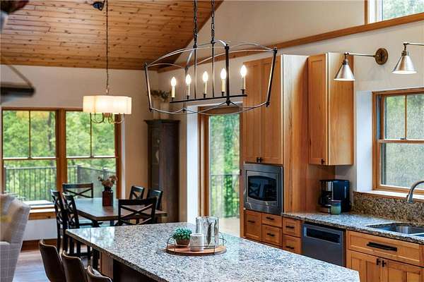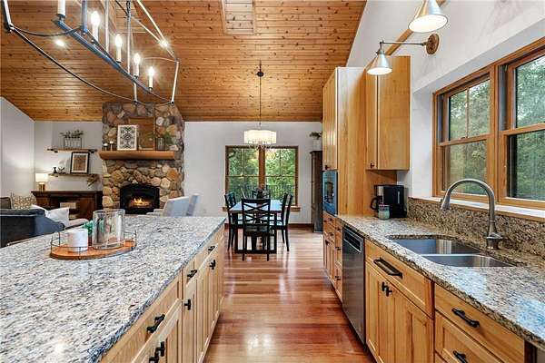 Refined living, rare privacy, and elevated comforts, all just minutes from Stillwater and Hudson. Set on over 4 acres in the desirable Birch Park neighborhood, on one of the most spacious lots, this home offers a retreat-like setting with wooded privacy, abundant wildlife, and curated outdoor spaces designed for connection and calm. The landscaping is artfully done, with established perennial gardens and professionally maintained grounds. A screened porch and maintenance-free decking extend the living space outside, ideal for morning coffee or evening conversation. Inside, the home is equally refined. The main level has been thoughtfully updated with reimagined lighting, fresh paint, modern hardware, and refinished Brazilian cherry hardwood flooring. The spacious open kitchen is equipped with KitchenAid appliances, a massive center island, and seamless flow for entertaining.The primary suite offers everyday luxury, including a generous walk-in closet, in-floor heat in the bath, and a double shower with two heads. The lower level, also with in-floor heat, includes two additional bedrooms, a family room with bar, and abundant storage. There's also a guest bath with a walk-in shower. The heated garage provides additional comfort, whether you're working on projects or simply coming home in winter. Work-from-home ease comes with blazing fast fiber internet, and peace of mind comes from recent updates including: New AC (2022), Central vacuum system (2025), HVAC cleaned and tuned (2025), Wood-burning fireplace chimney professionally inspected and swept (2025), Cedar siding restained (2024), and more! Quiet, private, and meticulously maintained, this home offers a rare blend of natural beauty and refined comfort in a highly desirable location.