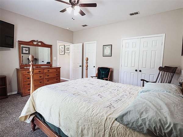PRICE REDUCED!! This stunning 28.49-acre property is the perfect setup for horse enthusiasts, ranchers, or anyone looking to enjoy country living with all the right amenities. The spacious 2,323 sq ft home offers a smart layout with two master suites--one on each side of the house--with total of 4 bedrooms, providing comfort and flexibility for multi-generational living or guests. Enjoy quiet mornings on the charming front porch, and cool off in the in-ground pool during the summer. A versatile HORSE barn with automatic waterers, a pipe-fenced yard, and a well-maintained horse barn make this property truly move-in ready for livestock. There's also a large shop, ideal for storage or hobbies, and a stocked pond with big fish perfect for relaxing afternoons or weekend fun. The land is not only beautiful--it's productive, with hay production already in place and fruit trees adding a sweet touch of country charm. Whether you're raising horses, looking for a private homestead, or simply want space to roam, this property offers it all. There are two single car carports, one on each side of the shop. The shop has a toilet and shower, so there will be 3.75 bathrooms. Property is only 5 miles to Lake Bob Sandlin public boat launch. The refrigerator will stay with the property.