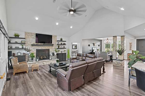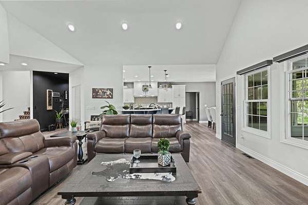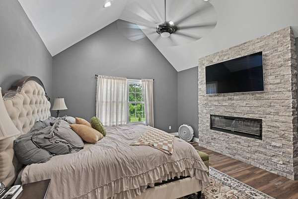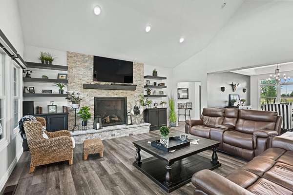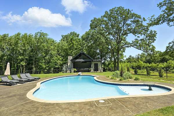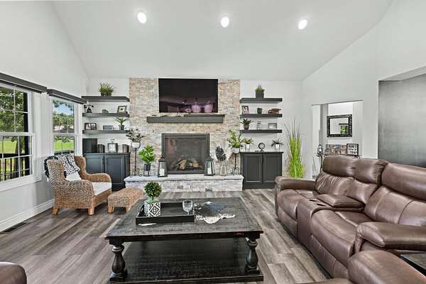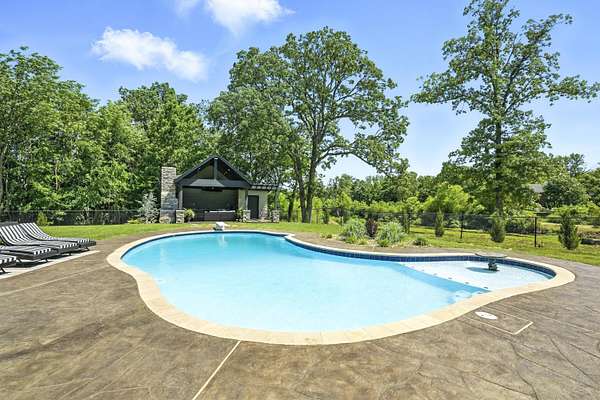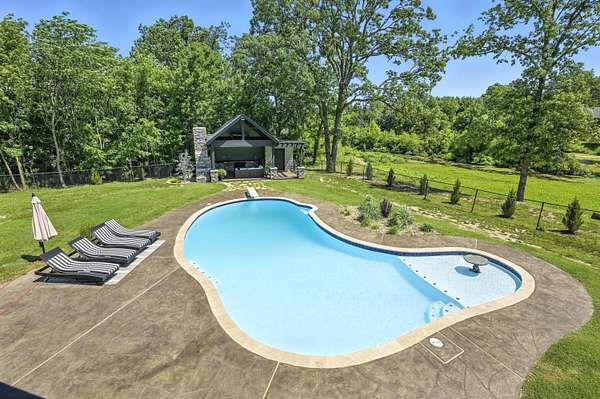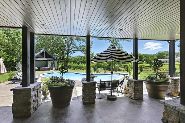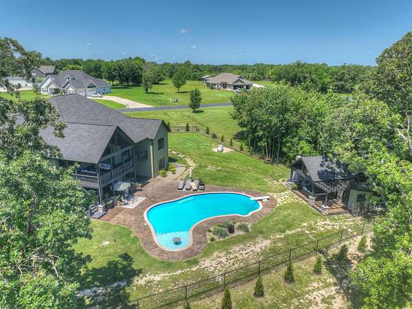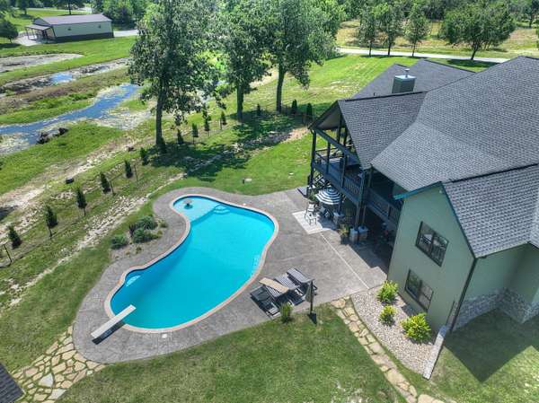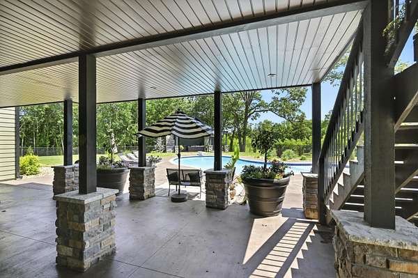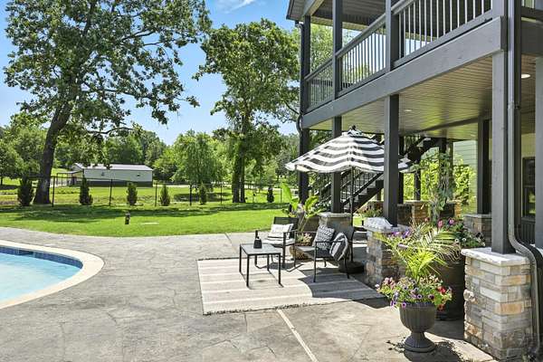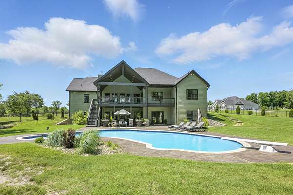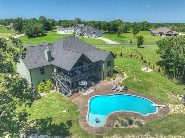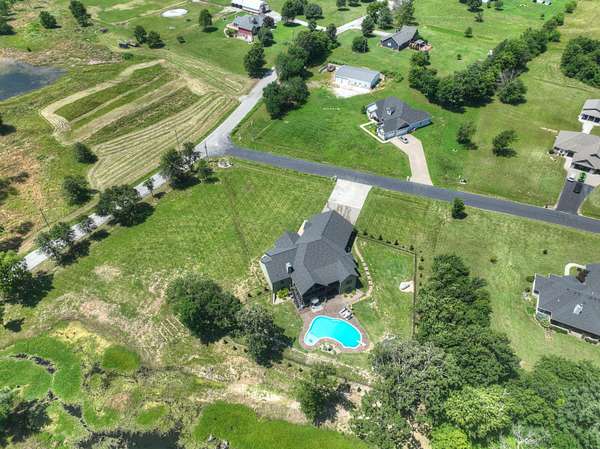 You have to see this one of a kind, stunning custom home! Enjoy your privacy on 3.68 acres adjoining a beautiful, serene pond. 5 bedrooms (could be 6), 5 full bathrooms. All bedrooms feature large walk-on closets! Main floor primary bedroom with oversized en suite with soaker tub and a custom tile shower with glass enclosure! Granite counters throughout, including all bathrooms. Stainless appliances in the gourmet kitchen and a double gas range to entertain as many guests as you'd like! Breakfast nook, bar seating, and formal dining room. This home was truly built for you and your guests' enjoyment. Enjoy a conversation overlooking the pool and pond on the second level deck. Take in the a great movie in the basement theater room, or relax downstairs in the second kitchen or by the the fireplace. Feast your eyes on the stained basement floors, they are truly incredible! You'll also find a stone room that is perfect for your hunting equipment, or it would be a great wine cellar as well! Get ready for summertime with a brand new in-ground pool, complete with custom lighting. Splash the days away, and truly enjoy coming home!