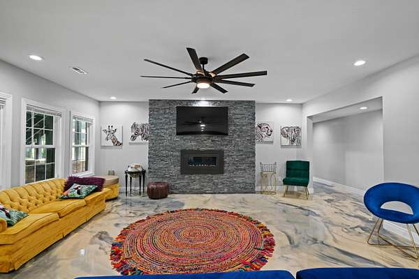 - Basement, Bathroom x 5, Bedroom x 4, Bonus Room, Den, Dining Room, Family Room, Kitchen, Living Room, Master Bedroom