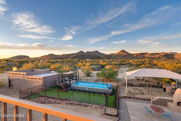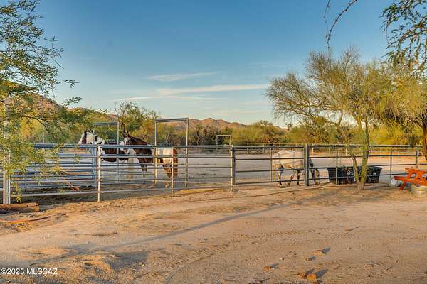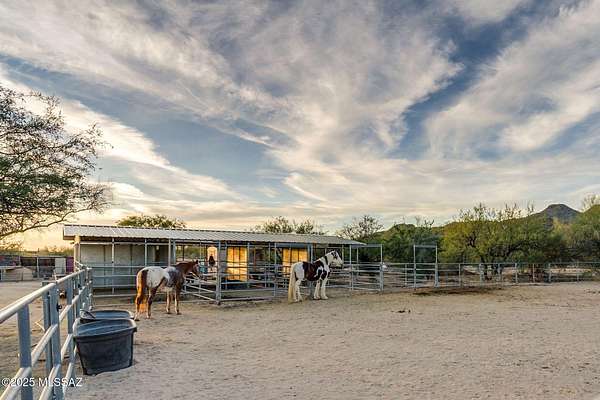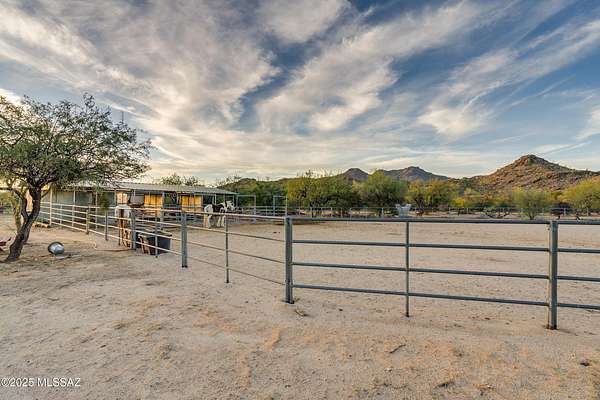 Are you searching for a quiet, peaceful life? This home presents an AMAZING opportunity to experience lush desert, mountain views, and star gazing. The beautifully updated home on 10 acres gives you the buffer of peace and quiet! Set at the base of the Tortolita Mountains, this property has magnificent 360 views. The updated, open concept home has a gorgeous kitchen with wide open views of the mountains from the living and dining area. Two fireplaces, one in the living area and one in the primary bedroom add to the homey, comfy feeling of this home. The flooring is tile throughout, and includes an office space and a large bonus room for hobbies, exercise or entertainment. Enjoy sunset views from the balcony in the enormous primary suite with plenty of space for a home gym and an office. This home was built with steel frames, has extra insulation and new exterior paint. The four car garage/workshop gives you room for all your hobbies. The horse facilities include a mare motel, large turnout areas and additional pens. It has No HOA and is in a wonderful, horse friendly neighborhood with a secluded feel, but keeps you conveniently close to northwest Tucson and Oro Valley stores and restaurants. Come see it today!