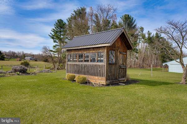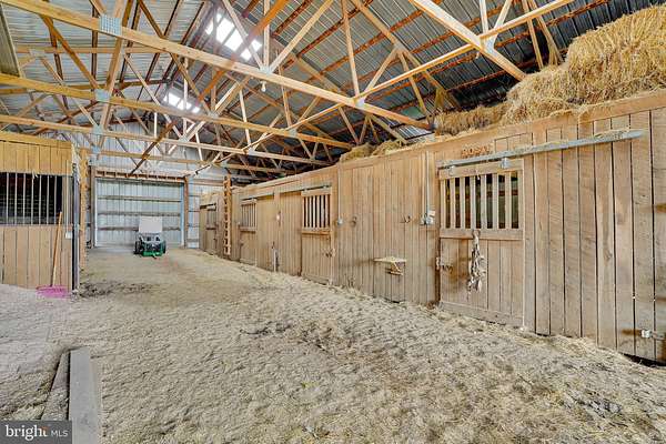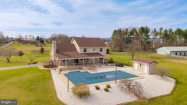 Welcome to Ridgeview Farm, an exceptional 28-acre equestrian estate in Clear Spring, MD, offering quality, versatility, and timeless craftsmanship rarely found elsewhere. The custom all-brick home has many highlights, featuring 4 bedrooms, 2 full and 2 half baths, a 2-car side-load garage, a covered front and rear porch with swing, and oak floors throughout. The kitchen is appointed with custom cherry cabinetry, granite countertops, and a center island with a cooktop. To access the back, you have French doors to a covered patio overlooking the saltwater pool. Additional main-level highlights include a formal dining room, a formal living room, a private office, a family room with a wood-burning fireplace, and a laundry room featuring tile flooring, a farm sink, and a laundry chute. Upstairs, the primary suite features a sitting room with walk-in closets, an amazing en-suite bath with heated ceramic tile floors, a custom tile shower, and a quartz double vanity. A walk-up floored attic and 900 sqft recreation room round out the living space. Beyond the house, this property offers significant opportunity and even income-generating potential across multiple revenue streams. The 1200 sqft workshop/studio, currently an open concrete pad with LP gas heat and a woodstove, presents a blank canvas with real potential: finish it out as a guest house, in-law suite, or multigenerational living space, adding long-term value and flexibility for extended family or rental income. The 3200 sqft horse barn outfitted with 8 stalls, cold and hot water in the tack room, feed rooms, and a dedicated paddock is ready for a full boarding operation. Paired with the outdoor riding arena, the facility can comfortably support a working equestrian business from day one. The massive detached garage, with 14-foot ceilings, a grease pit, wash bay, and dedicated half bathroom, offers an exceptional opportunity for RV, boat, and large vehicle storage rentals. The remainder of the property has been used as hayfields in the past, which adds an additional income opportunity or a source to supply feed for livestock. Outdoor living matches the scale of the rest of the property. The big L-shaped saltwater pool has a new liner, pool lighting with multicolor modes, and a new generator (2024). The pool is surrounded by extensive hardscape, including a pool house with its dedicated half bathroom. Additional highlights outside include a small greenhouse, brick walkways, professional landscaping, a paved driveway with field fencing, tilt-in replacement windows, and a brand-new architectural shingle roof (2025), all conveniently located just minutes from I-70 and a short drive to Whitetail Ski Resort.