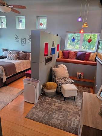 - Bath In Primary Bedroom, Bookcases, Built In Features, Cable Tv, Cathedral Ceilings, Ceiling Fans, Central Vacuum, Dual Sinks, Fireplace, Granite Counters, Heated Floor, High Ceilings, Jack And Jill Bath, Shower Only, Smooth Ceilings, Walk In Shower, Window Treatments, Wired For Sound