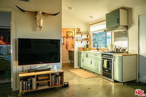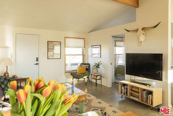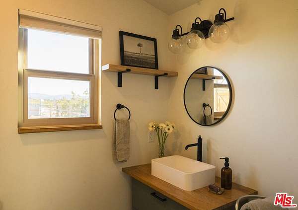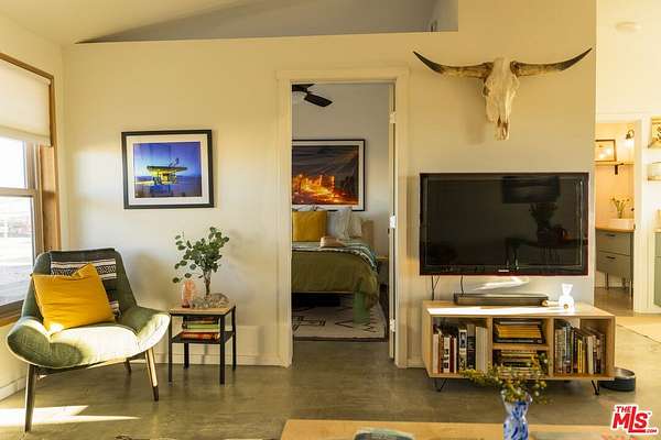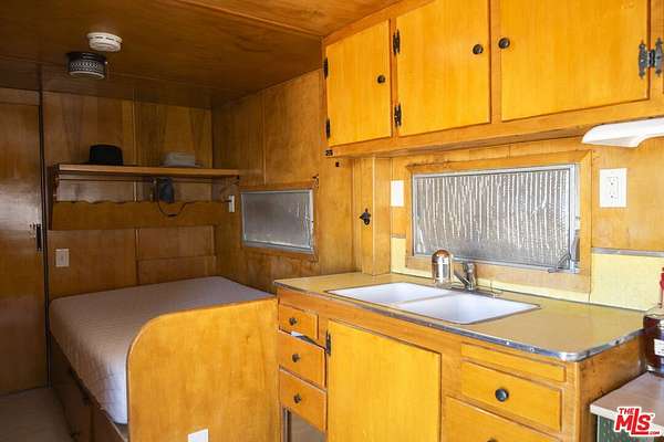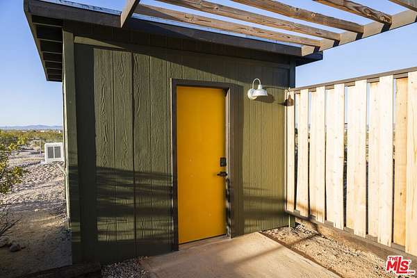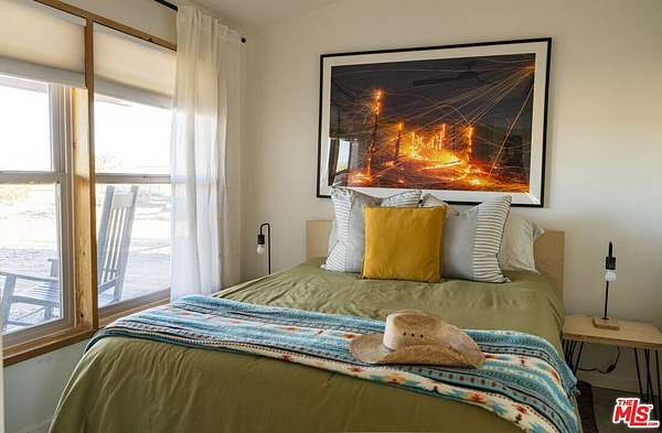 Resting under the twinkling night sky of Sunfair Heights sits this historic 1956 one-bedroom, one-bathroom homestead cabin stretched across 5 acres of open desert. Trade the buzz of the city for airy desert-modern interiors, morning coffee on the porch surrounded by mountain views, sunsets in the saloon over a BBQ feast, and stargazing on calm, quiet nights. Thoughtfully designed with a small, easy-to-maintain footprint, the property features 12-foot vaulted ceilings, a fenced exterior, a vintage trailer for guest stays, outdoor fire pit area, swing set, and a shed for tools. The home is powered by a robust solar array and battery bank setup, operating as a net-zero emissions property with no electricity bills. Easily explore protected BLM land neighboring the property, or wander into the National Park for a sunset atop a pile of boulders, followed by some beers at Mas o Menos - you're a local now!