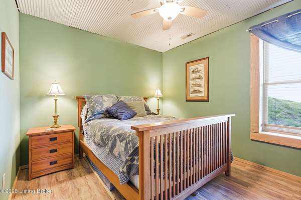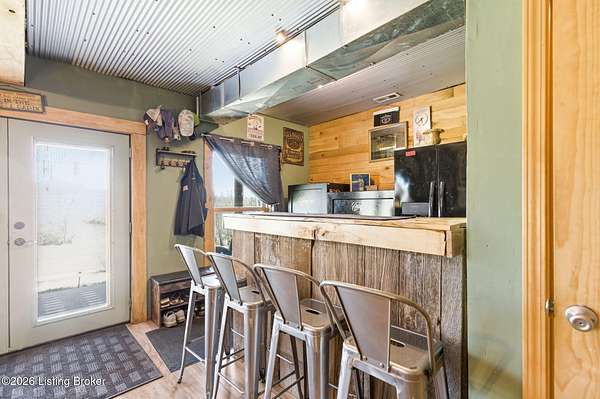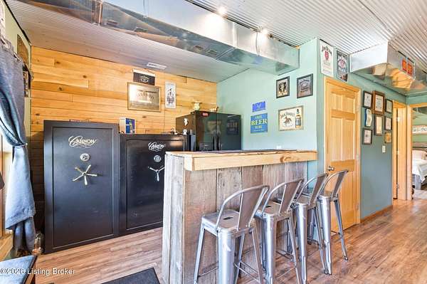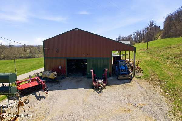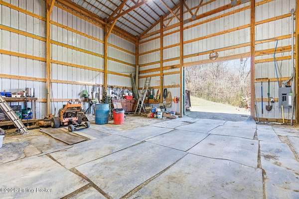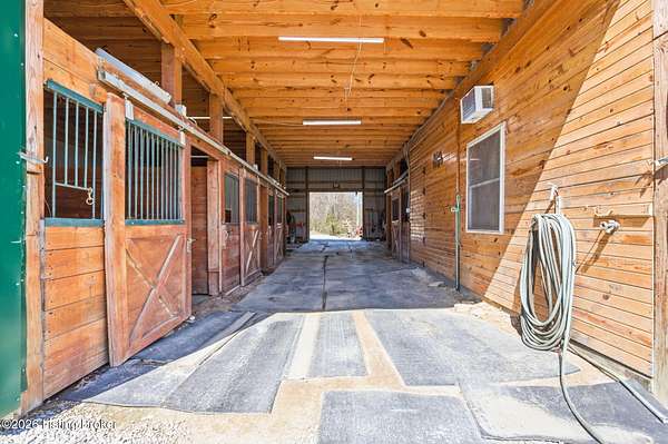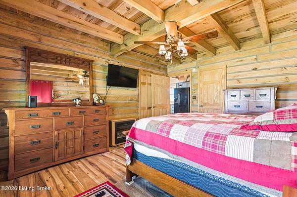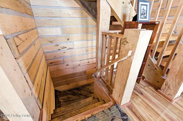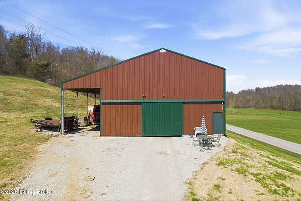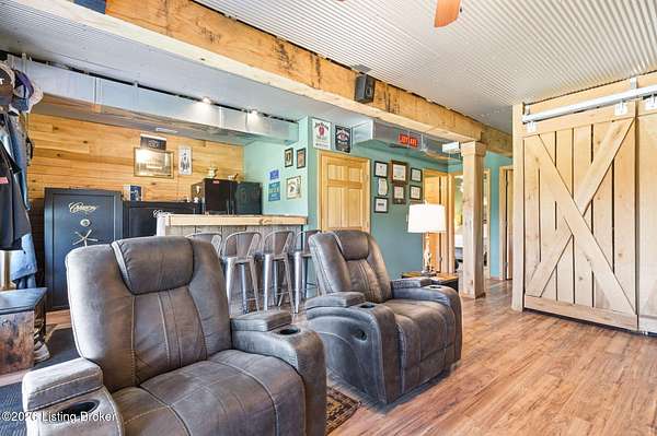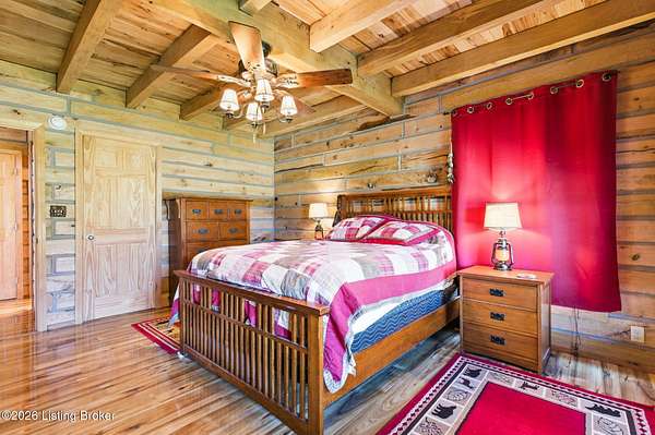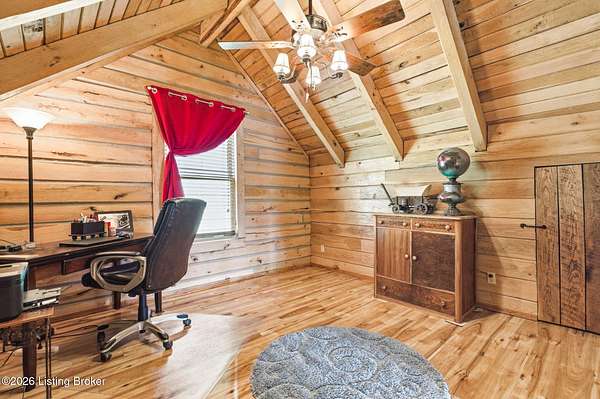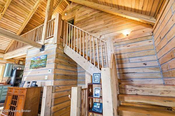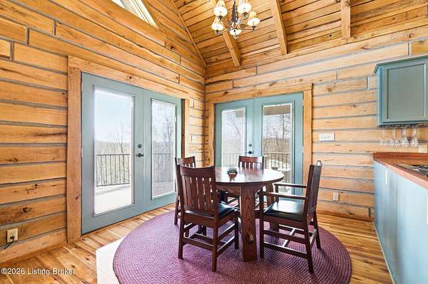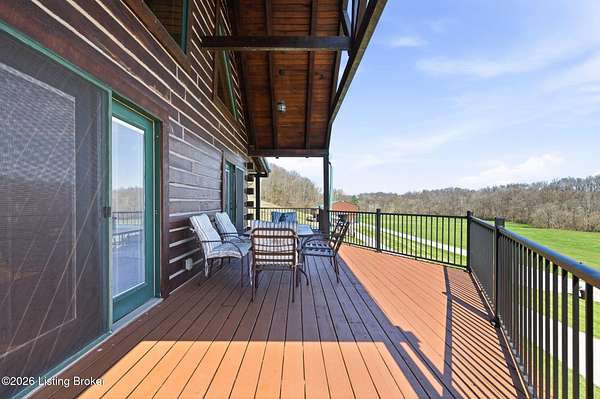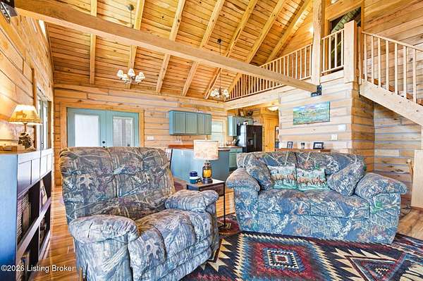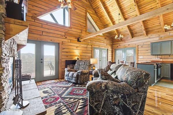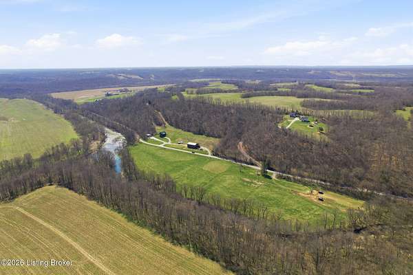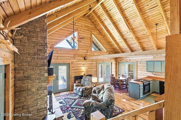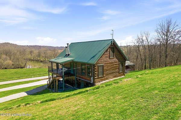 Tucked away on 41.1 acres of gently rolling countryside, this beautifully crafted oak log cabin offers a rare blend of privacy, recreation, and functionality. Built in 2014, the home features 4 bedrooms, 2 full baths, and 2,298 finished square feet filled with rich wood tones, exposed beams, and timeless rustic character. Inside, you'll find a warm and inviting interior with beautiful craftsmanship throughout, including cherry butcher block countertops, large windows that bring in natural light and showcase the surrounding views, and two impressive rock fireplaces that create cozy gathering spaces. The wraparound deck offers the perfect place to relax and take in the peaceful setting. Outside, the property opens up to a beautiful mix of open pasture and wooded hills, creating an ideal setting for those who love the outdoors. Whether your interests include hunting, horseback riding, fishing, kayaking, trail riding, or simply enjoying room to roam, this property offers a lifestyle that is hard to duplicate. Elk Creek meets the Salt River on the property, adding both scenic beauty and recreational appeal. The improvements continue with a 30' x 31' three-car detached garage complete with a car lift, plus an impressive 38' x 60' barn featuring 4 stalls, a tack room, hay loft, and a 12 foot lean to. With a combination of cabin charm, usable acreage, water access, and serious outbuildings, this is a unique opportunity for anyone seeking a private retreat, horse property, or full-time country lifestyle.