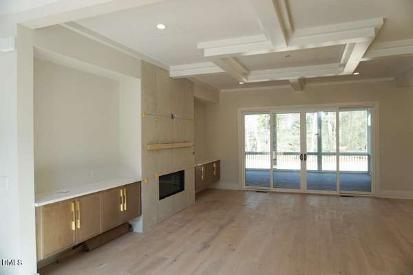 Custom built by one of Cary's most prestigious builders. Perfectly situated on a generous 1+ acre home site with only county taxes. This open concept layout offers four bedrooms and four and a half bathrooms, including a spacious owner's suite and a private study/guest suite. A third floor walk-up attic provides tons of storage space. Wide plank harwoods and upgraded trim span throughout the main living areas! Featuring a gourmet kitchen with quartz countertops and backsplash, a large center island with barstool seating, custom ceiling-height cabinetry, gourmet appliances including a 6-burner gas range with double oven and a hidden scullery with second dishwasher and microwave. The spacious owner's suite offers a tray ceiling, wide plank hardwood flooring and a luxurious ensuite bath with a dual vanity with quartz top, a spa-style shower with tile to ceiling surround and deep soaking tub. All adjoining an oversized walk-in closet with custom built-ins! The family room features elegant ceiling beams with cove crown molding, a linear gas log fireplace with tile surround and flanking custom built-in cabinets and large sliding glass doors to the rear covered porch and grilling deck. Upstairs, you'll find a huge recreational room with direct access to the guest bath and three additional ensuite bedrooms! Complete with a third floor walk-up attic space and three-car garage for ample parking.