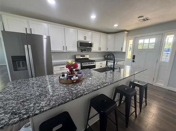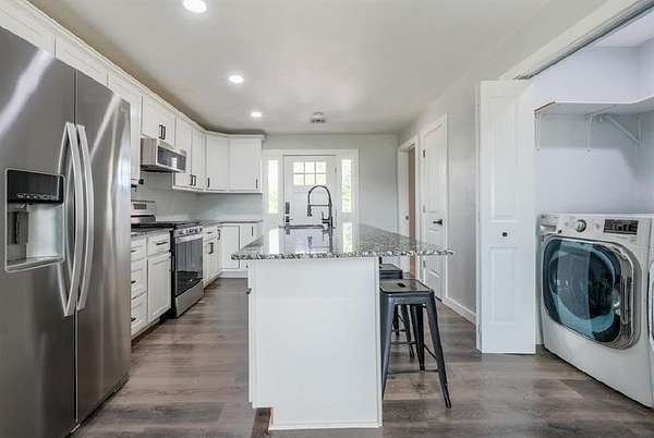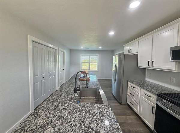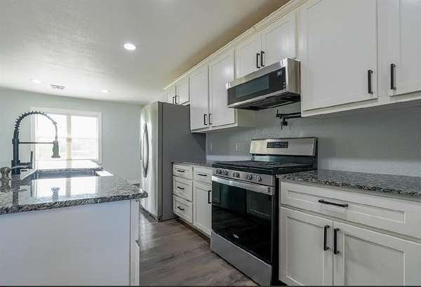 Discover the charm of country living just moments away from in town Tecumseh, situated conveniently on Highway 9. This expansive 2.5-acre property is a dream for anyone seeking space and tranquility, featuring a corral, barn, and 30x50 shop/garage perfect for parking, projects or storage. Home is set up on city water and well water available for land and barns. Step inside to find a thoughtfully designed split floor plan that includes three bedrooms and two modern bathrooms. Enjoy entertaining in the oversized living area or large back patio. The home has been completely remodeled with high-quality finishes, including granite countertops, a new metal roof, and fresh paint throughout. All windows and doors have been replaced, enhancing both aesthetics and energy efficiency. The flooring has been upgraded, providing a seamless flow and a clean cool feel. Enjoy the beauty of the outdoors or simply relax while watching the beautiful sunsets and sunrises surrounded by open meadows on either sides. The property is fully fenced and cross-fenced, ensuring privacy and security. With easy highway access and paved roads. This rare find is a true gem that combines the best of country living with modern amenities, all just seconds away from town. Don't miss the opportunity to create your dream home in this idyllic and rare find.